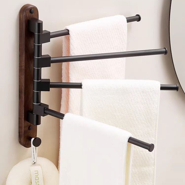 胡桃木回転可能タオルラック穴なし浴室掛けタオルバー多棒タオルラック