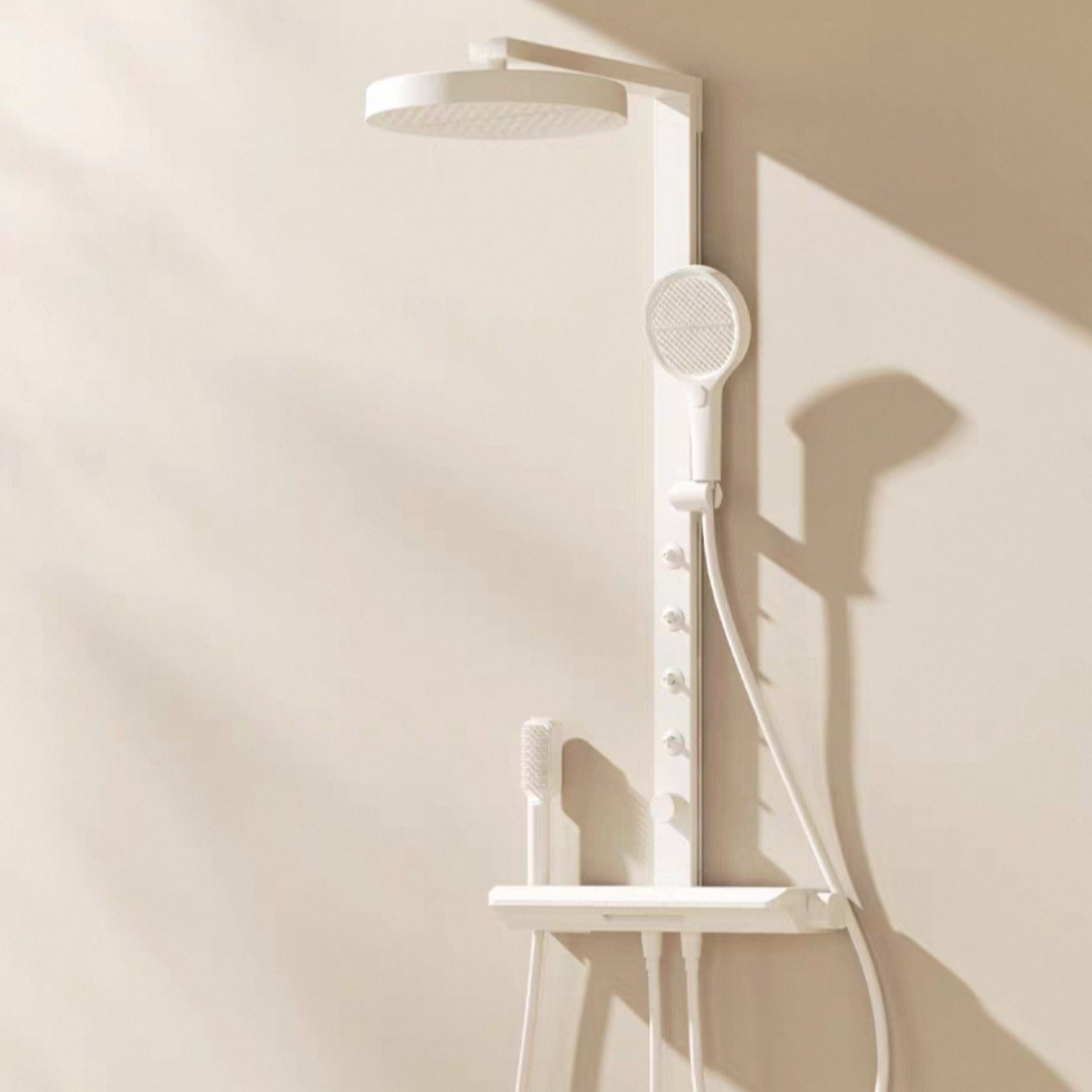 乳白色の全銅製バスルームインテリジェント恒温デジタルディスプレイシャワーセット、アンビエントライトピアノキーシャワーセット付き