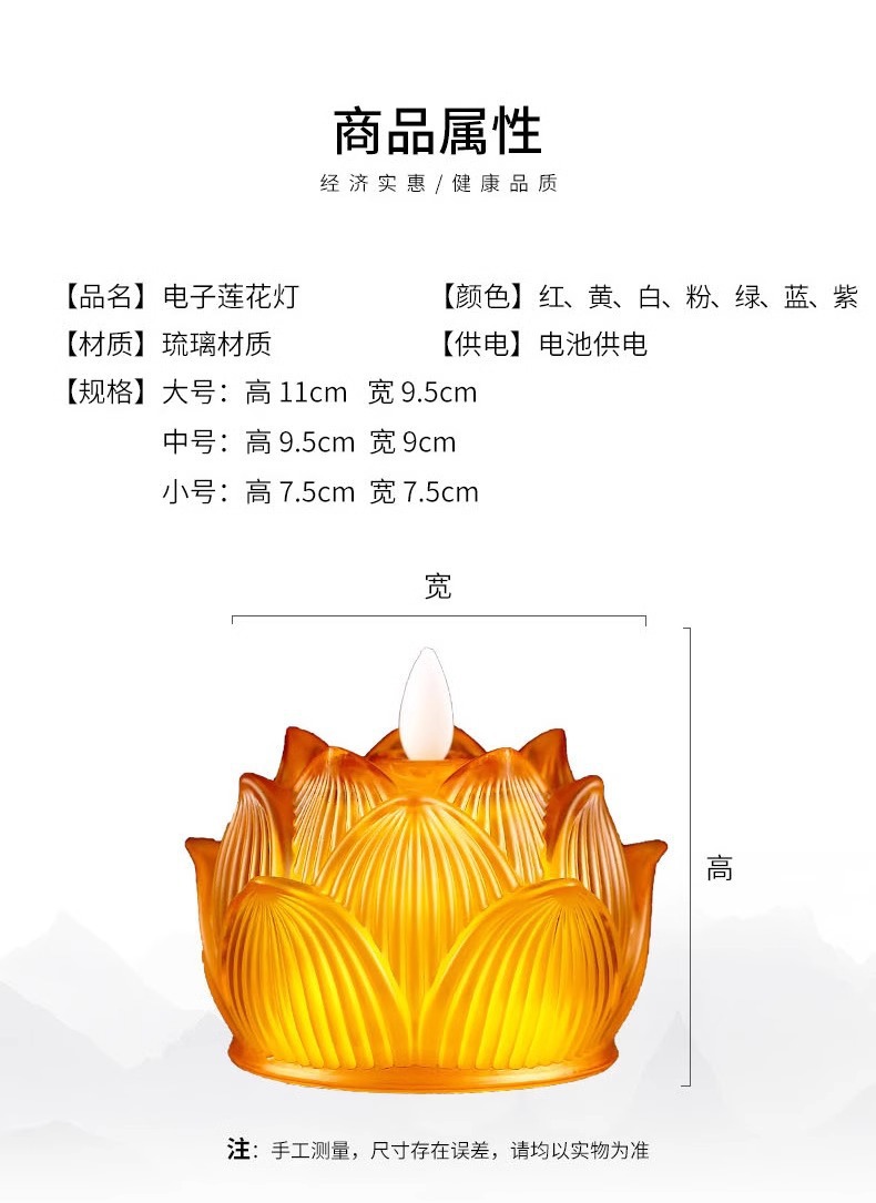 家庭用瑠璃蓮花供仏長明灯led電池シミュレーション揺れるハスの花灯防風ろうそく灯置物