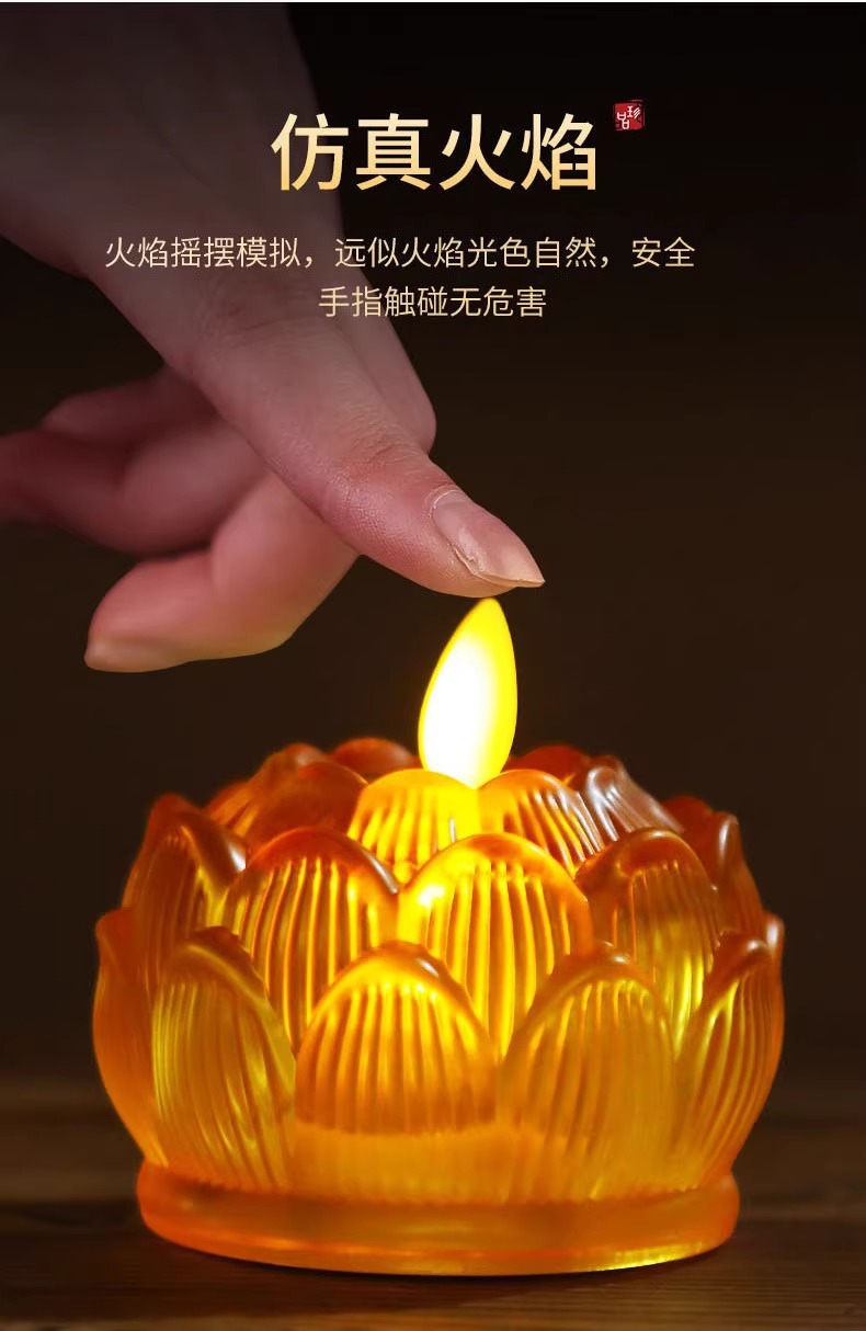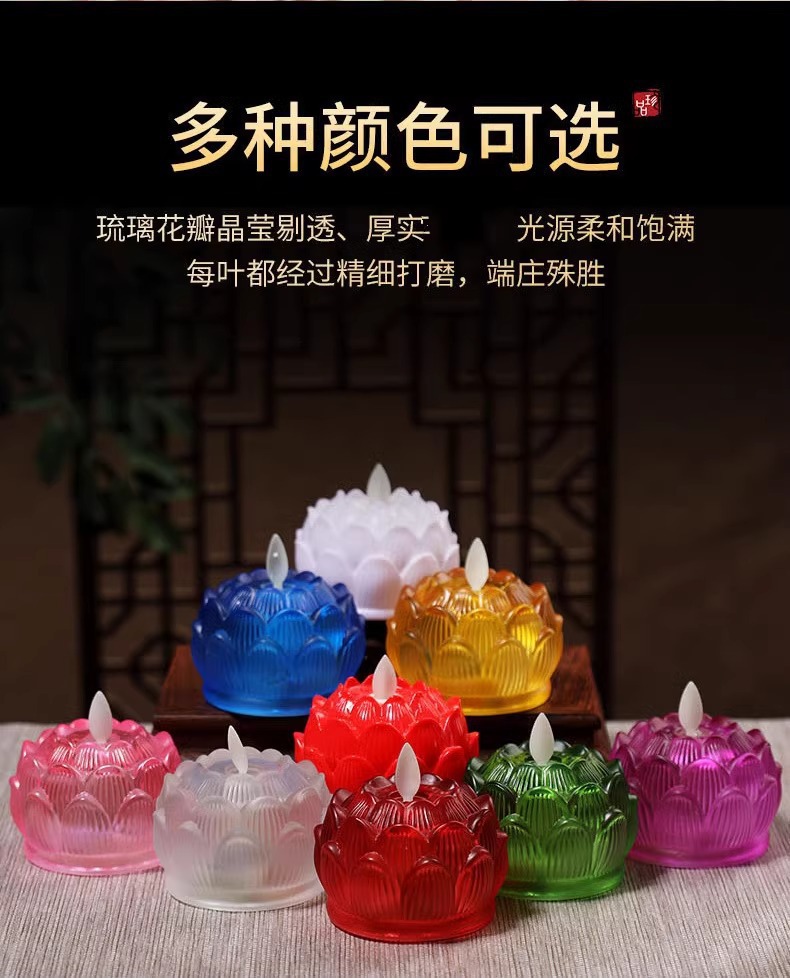新型led電子ろうそく灯シミュレーション瑠璃燭台蓮灯電池充電led仏陀台前供仏灯