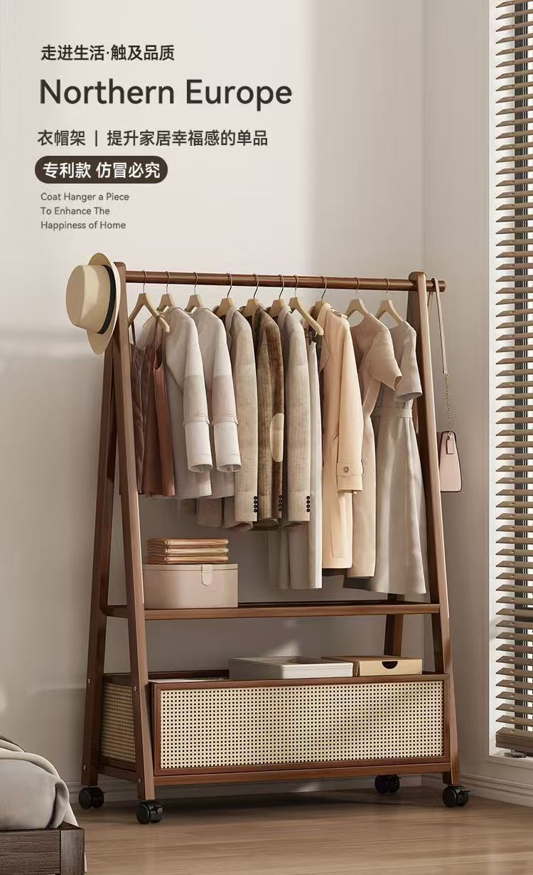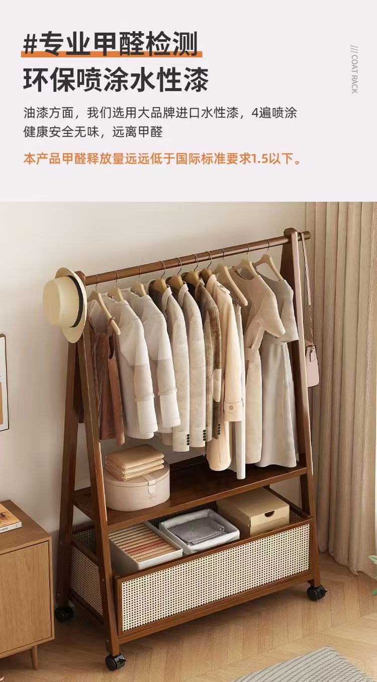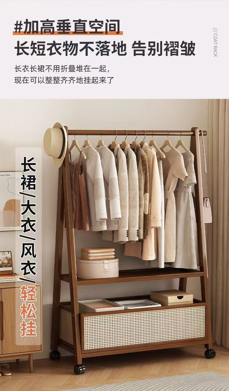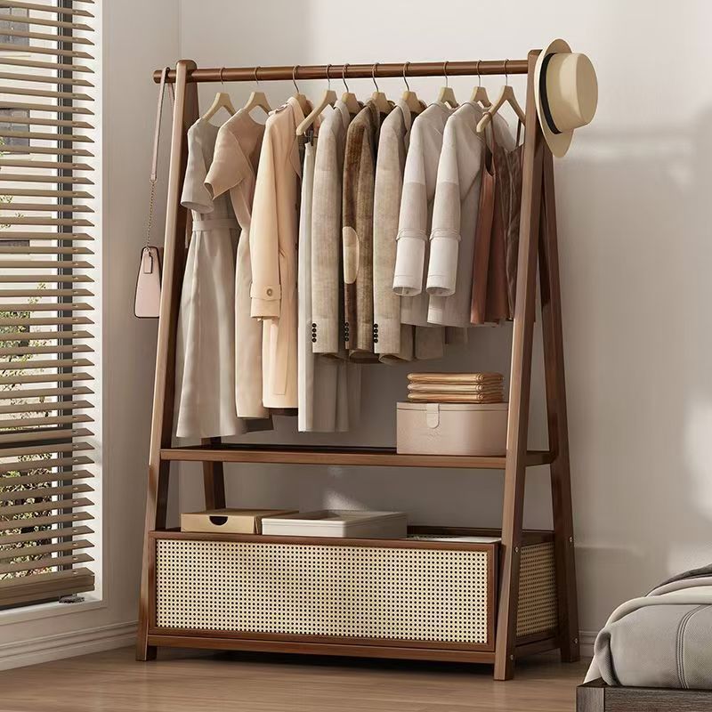 床置きハンガー家庭用移動服ラック大容量木製シンプルハンガー衣類収納ラック