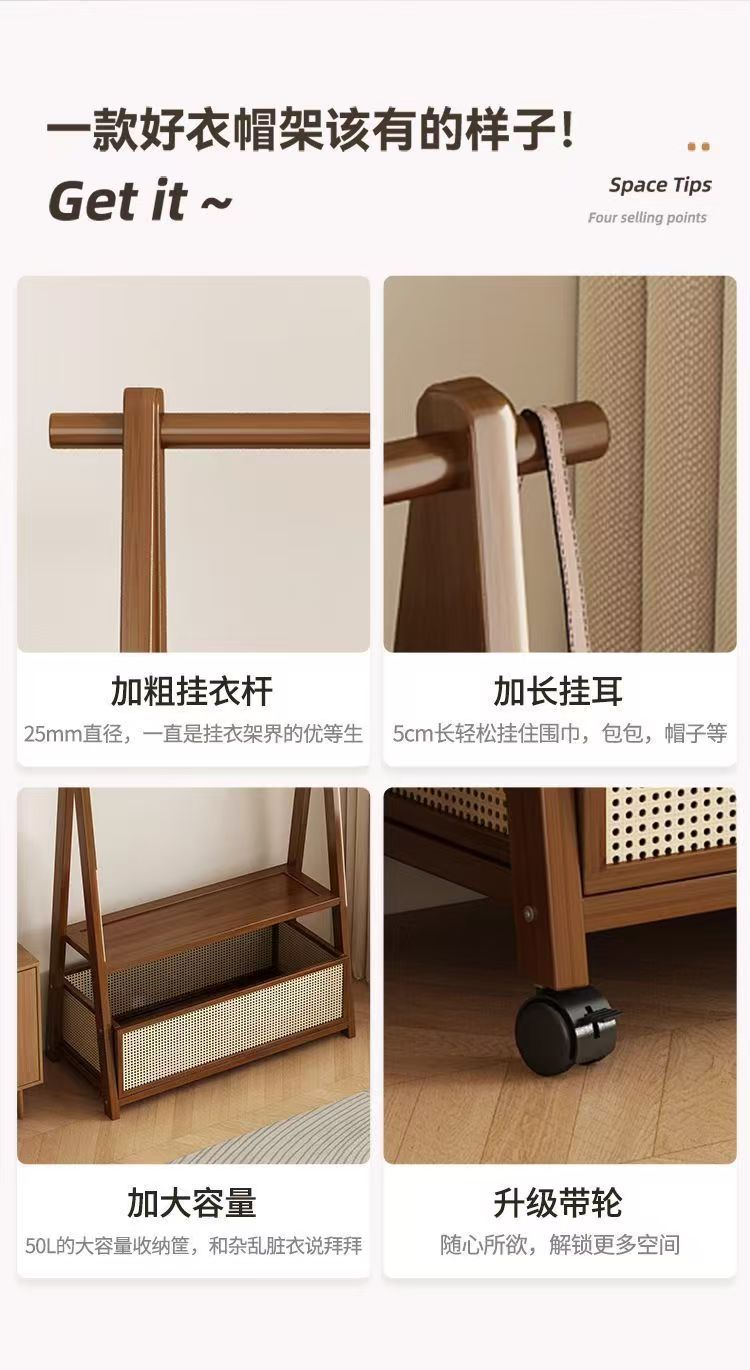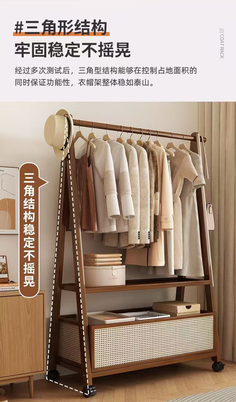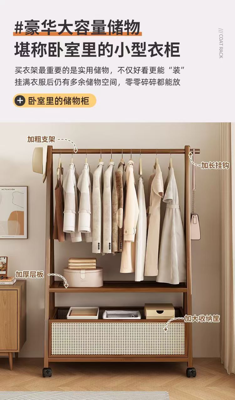 床置きハンガー家庭用移動服ラック大容量木製シンプルハンガー衣類収納ラック