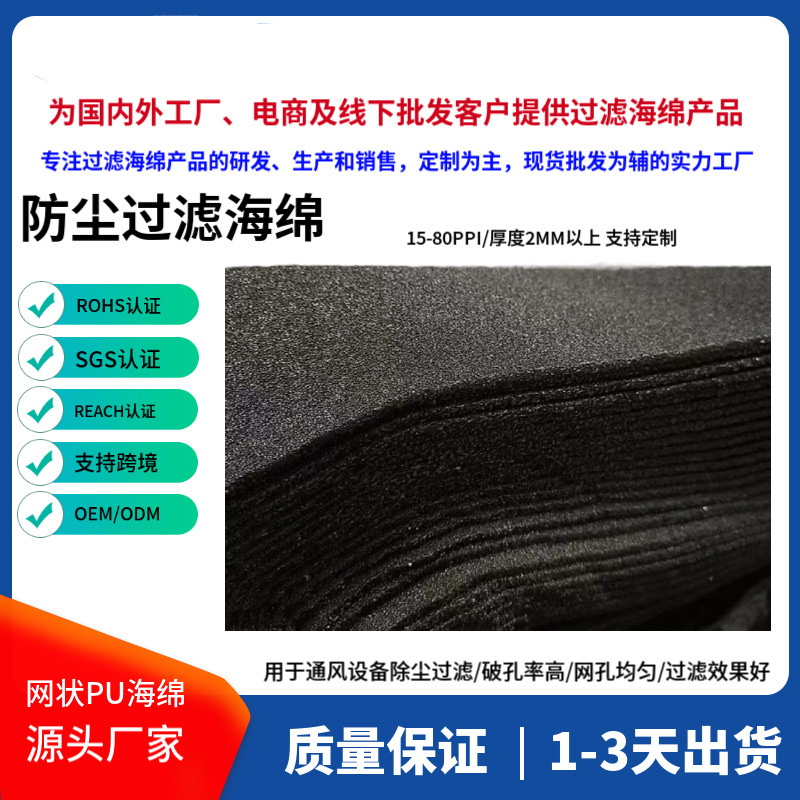 空気圧縮機の換気装置の吸気口と排気口に適しています。空気防塵黒色PUポリウレタンフィルタースポンジのサイズはカスタマイズ可能です。
