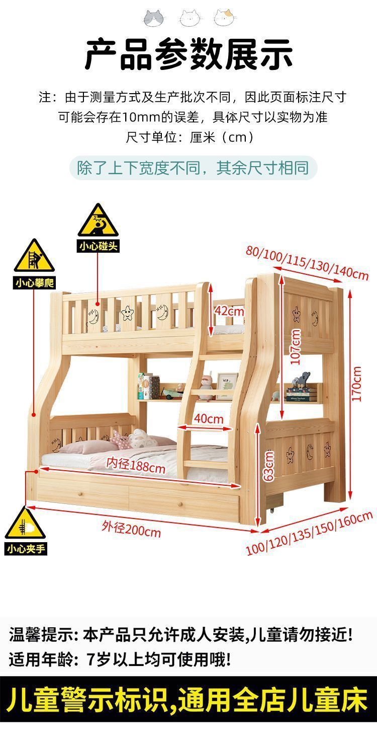 实木子母高低床上双层床二层儿童加厚上下床两层小户型儿童床铺床