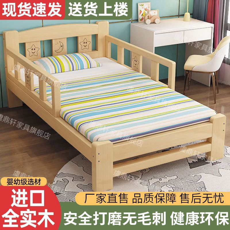 全实木儿童床男孩单人带护栏小床简易松木加宽拼接大床经济型女孩