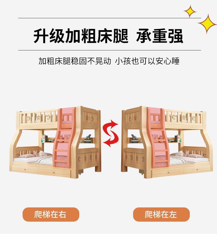 加厚全实木床上下床成人子母床小户型多功能高低床儿童床双层木床