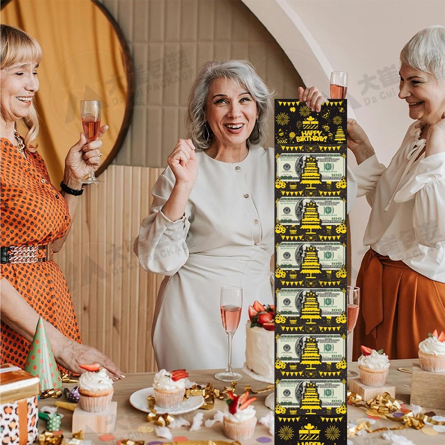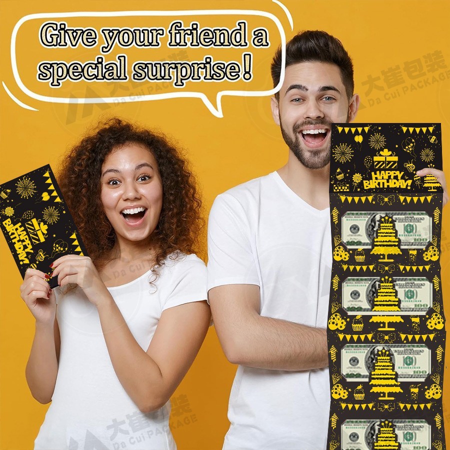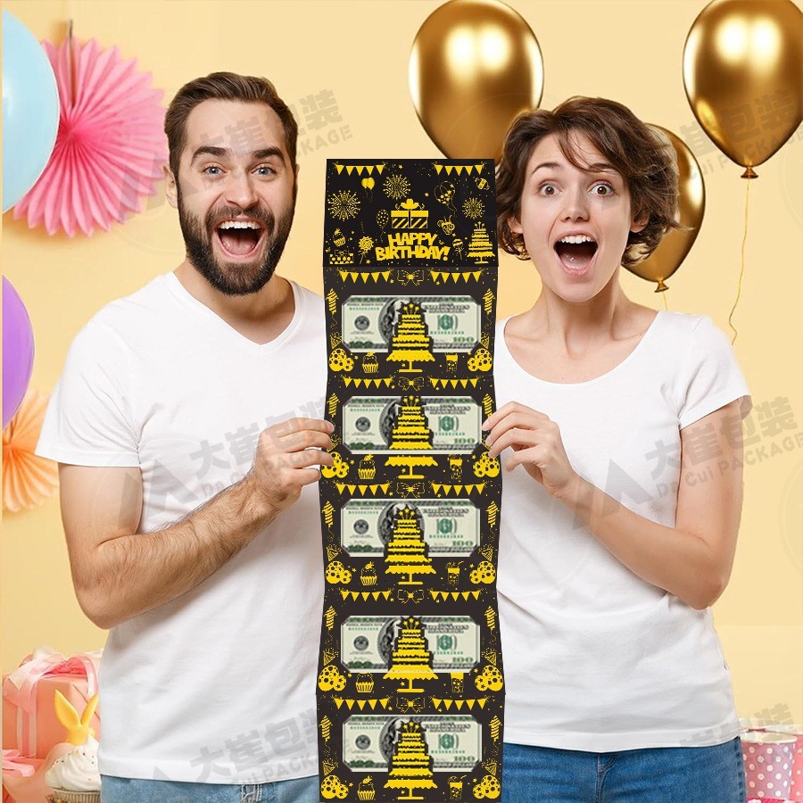 ブラックゴールドの誕生日現金折りたたみギフトバッグ、サプライズギフト用ブラックゴールド封筒、シーン装飾用
