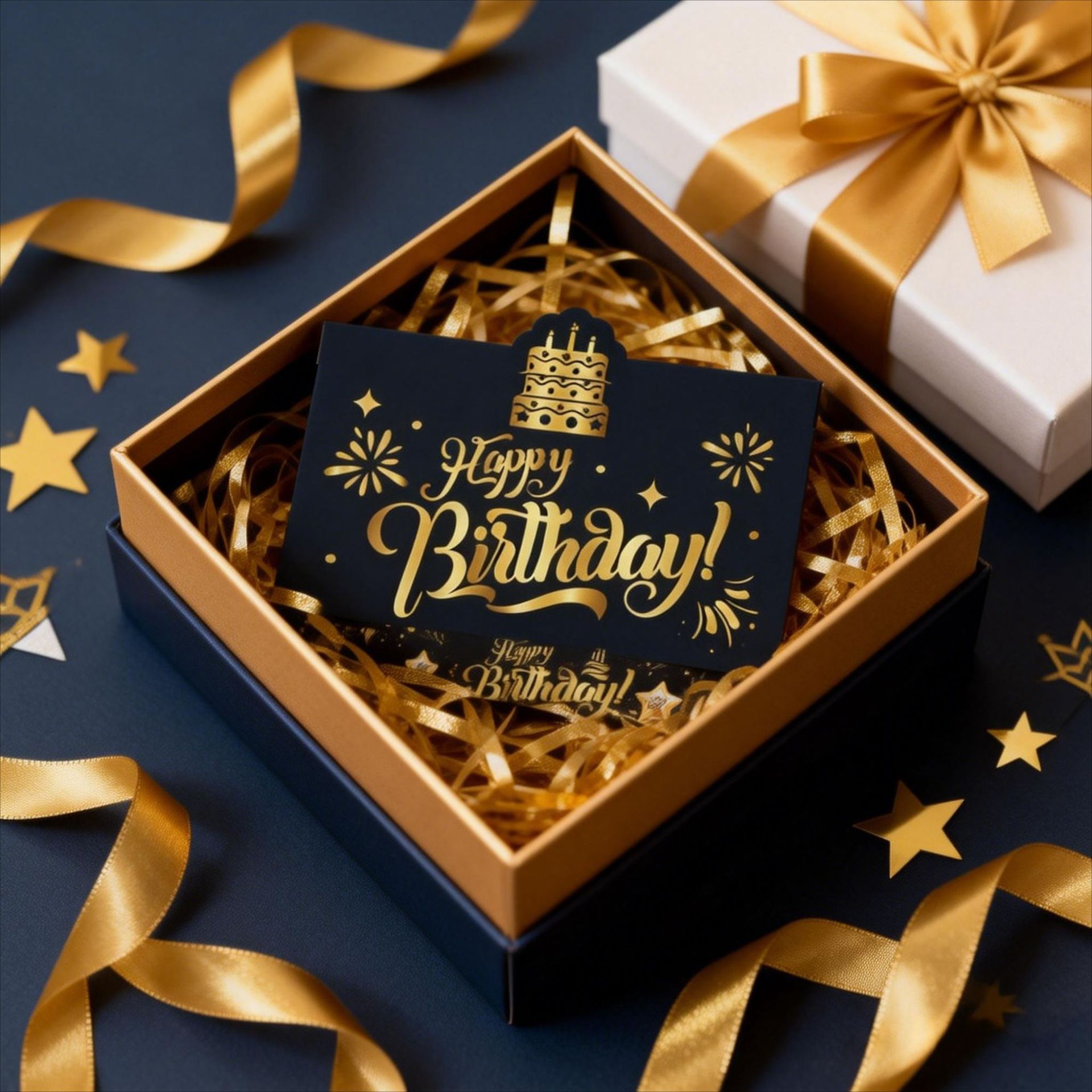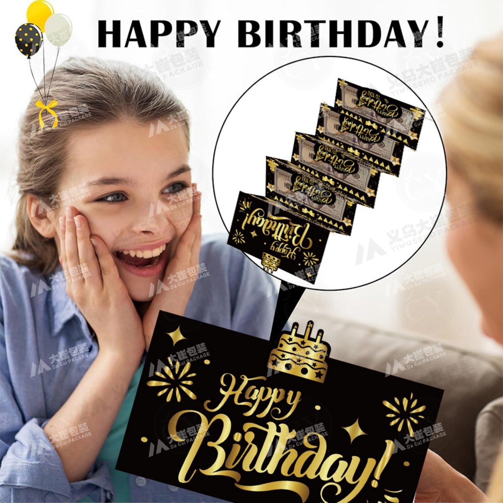 ブラックゴールドの「ハッピーバースデー」紙製お金出しボックス、サプライズ誕生日パーティー、ハロウィンギフト、クリスマスギフトボックス