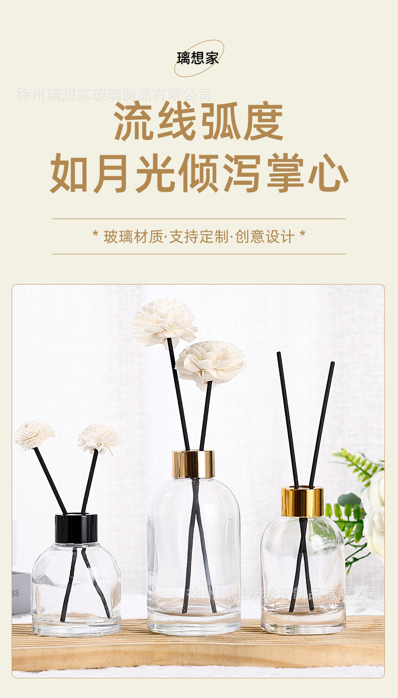 跨境爆款 无火大肚香薰瓶100ml 卧室空气净化玻璃香水瓶家居摆件
