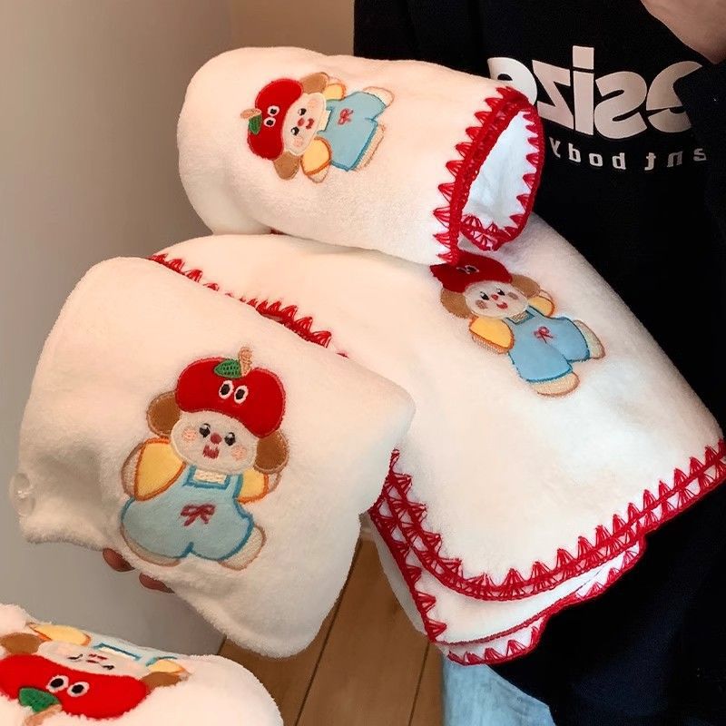 可爱苹果小熊浴巾女珊瑚绒吸水速干成人洗澡裹巾学生毛巾三件套
