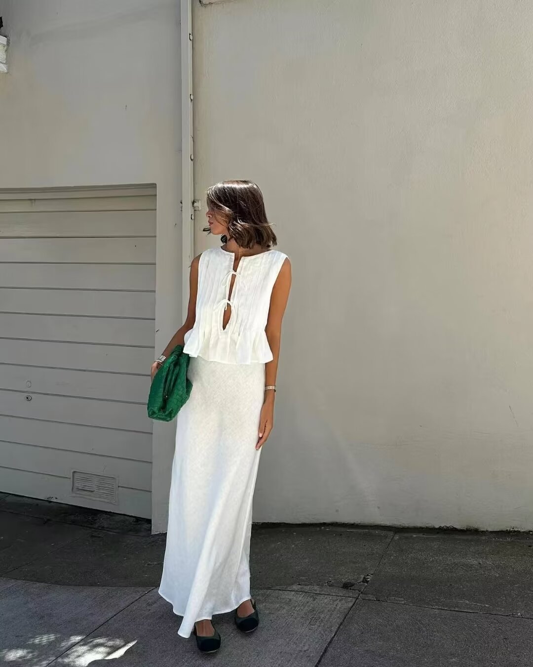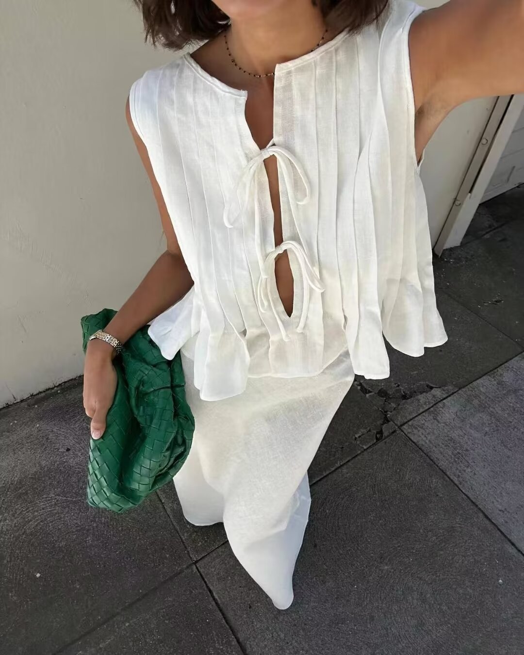 アマゾンの国境を越えた対外貿易欧米の女装2024夏の新しいファッション百タック綿シャツのスカートセット