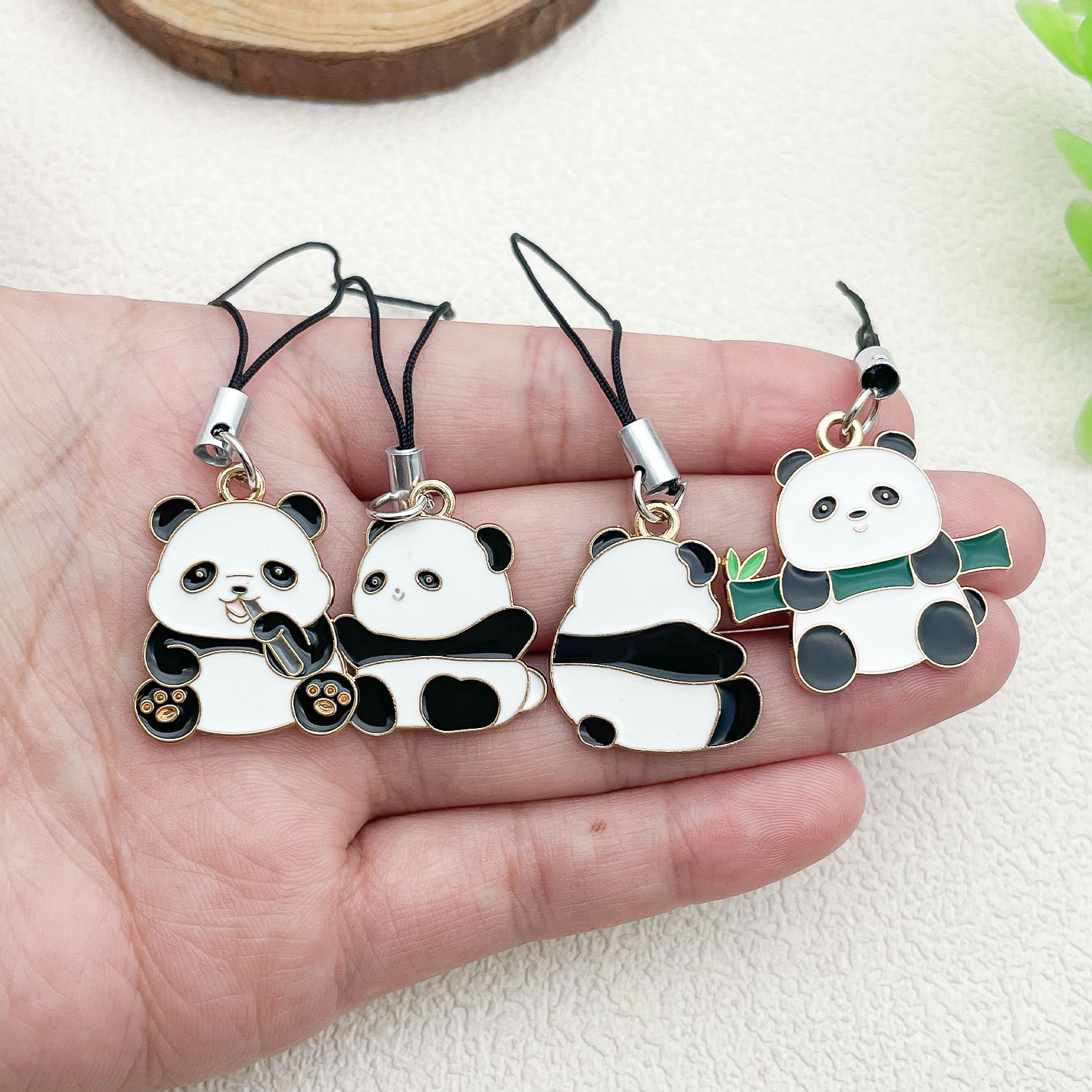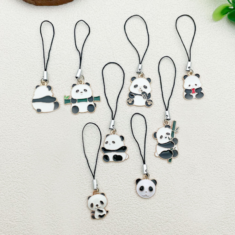 漫画のアイデアかわいいパンダの携帯電話のひもは国宝のペンダントを飾ります。