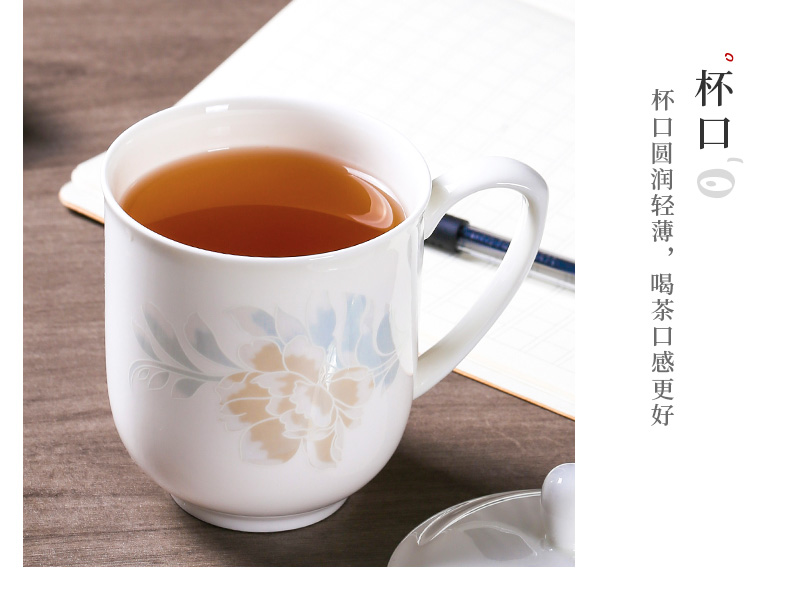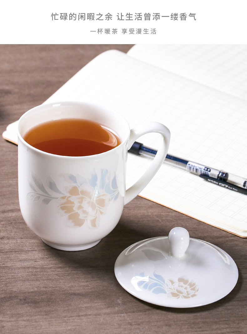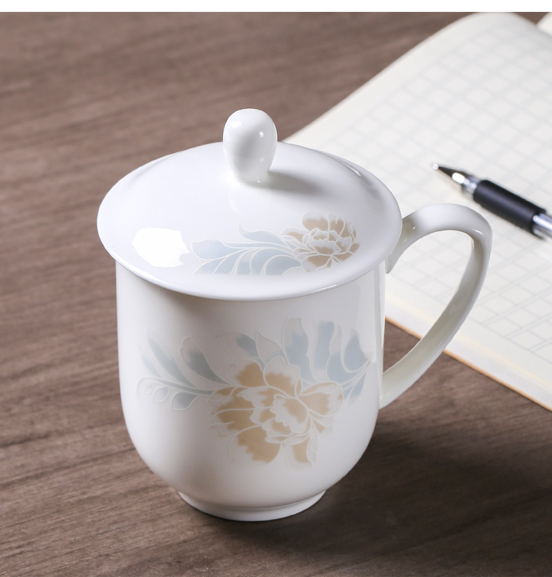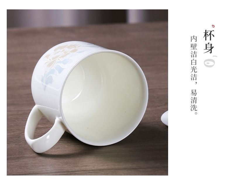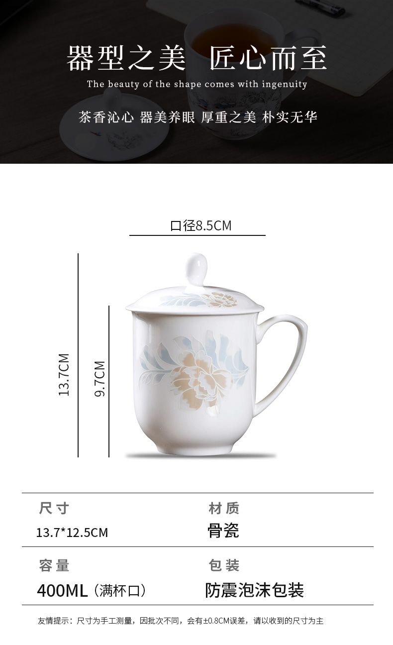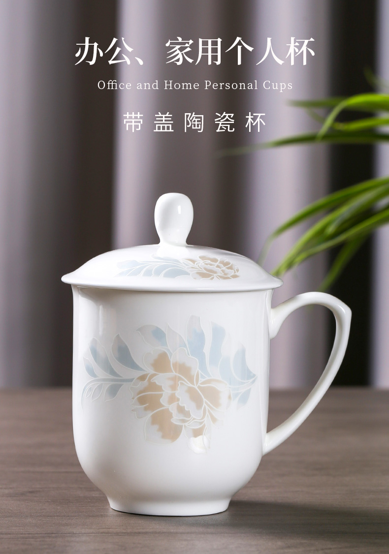 景徳鎮陶磁器カップ蓋付きシンプルな骨磁器事務会議カップ家庭用カップ接客カップ個人カップ