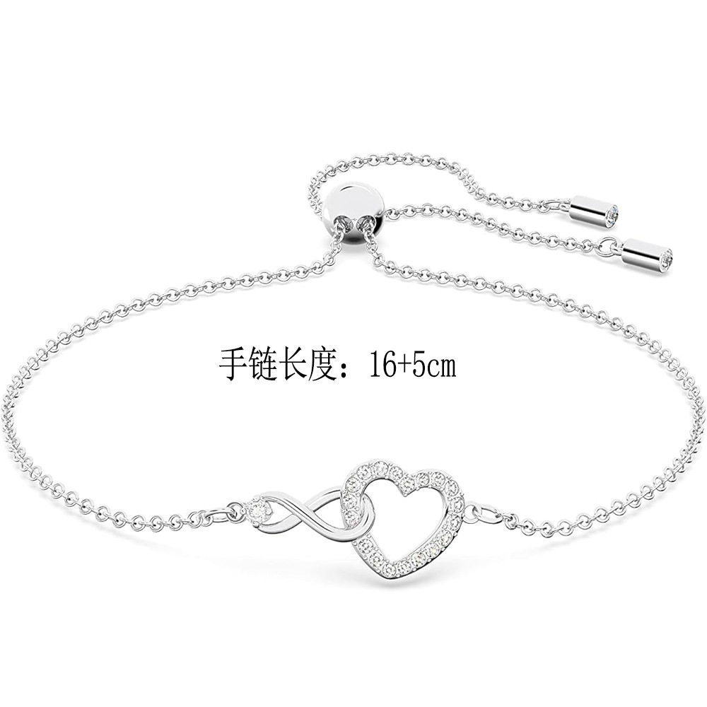 新款永恒爱意镶钻心形圆环推拉手链欧美8字形双环爱心时尚手链女