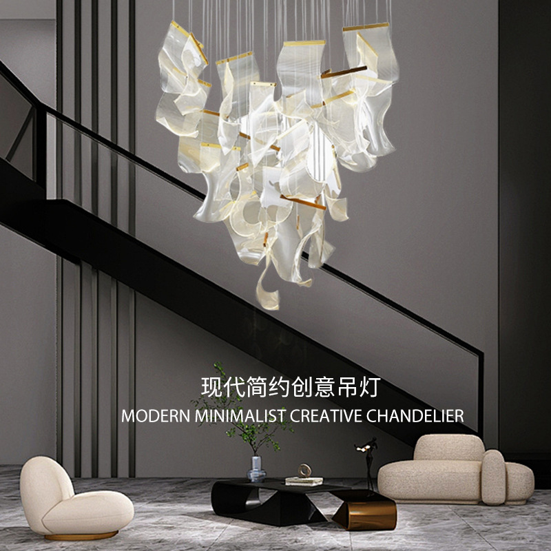 デュプレックスハウス大型シャンデリアポストモダンシンプルライト高級リビングルームランプクリエイティブ北欧ランプ階段レストランアート照明