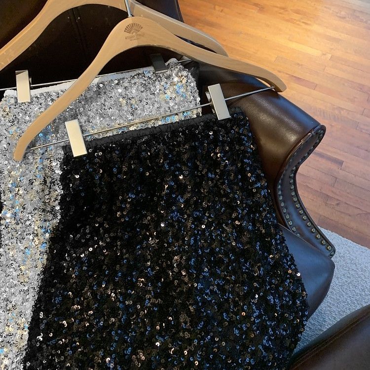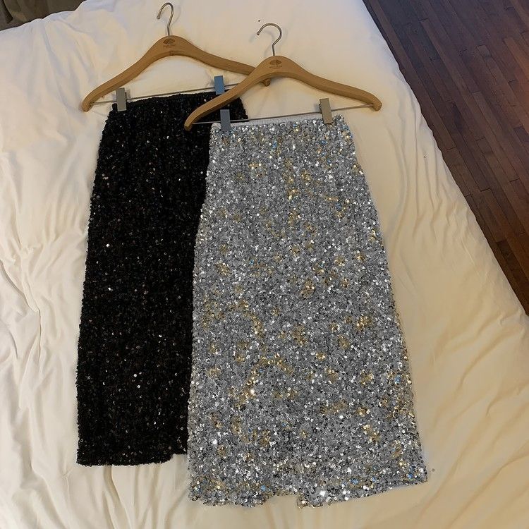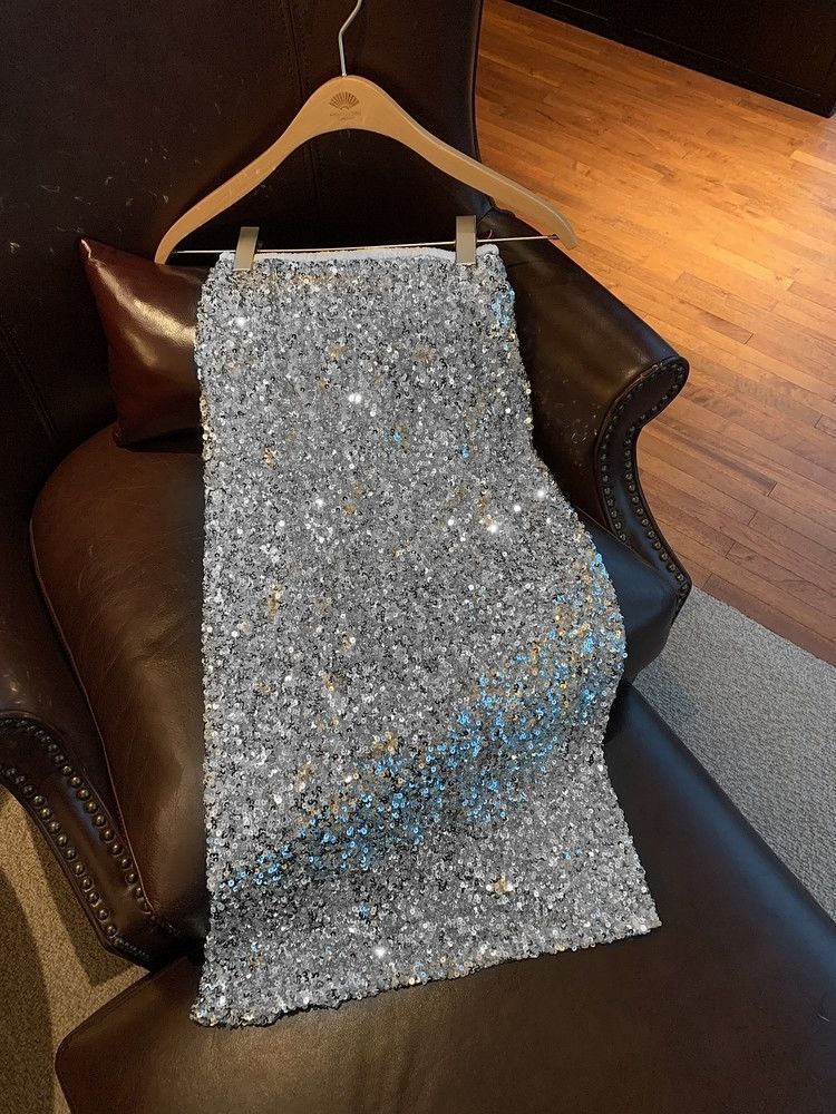 2025年春秋純色のスパンコールスカートの女性の高腰デザイン感が小さいです。