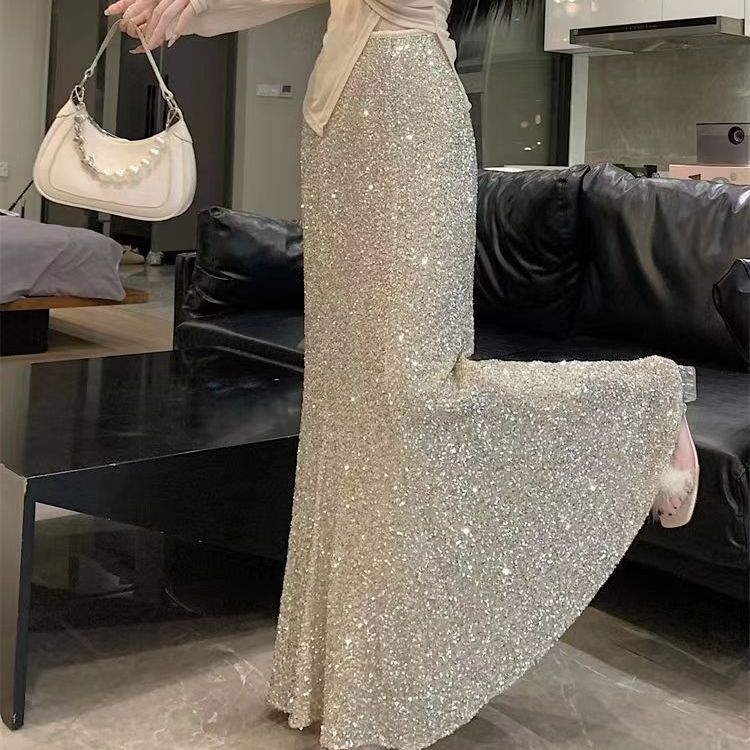 常规/加绒重工亮片鱼尾半身裙女高腰显瘦字版半身裙感满满