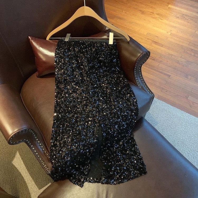 微キラキラスパンコールベルベットスカート女性2025秋冬新気質高腰通勤は痩せている