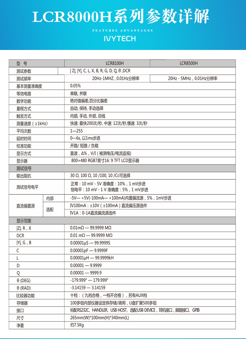 艾維泰科LCR8100Hデジタルブリッジ1MHz/5MHz高精度部品計コンデンサ