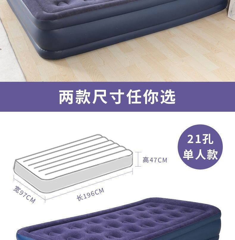 青色単層 PVC 植毛ベッド - ハンドポンプ付き,青色単層PVC植毛ベッド(電動ポンプ含む),青色単層PVC植毛ベッド - 家庭用車用ポンプ付き