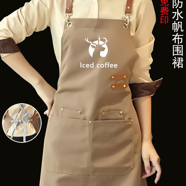 キャンバスエプロンロゴ印字カスタム飲食専用ミルクティー店花屋コーヒーアイロン師防水作業服女性
