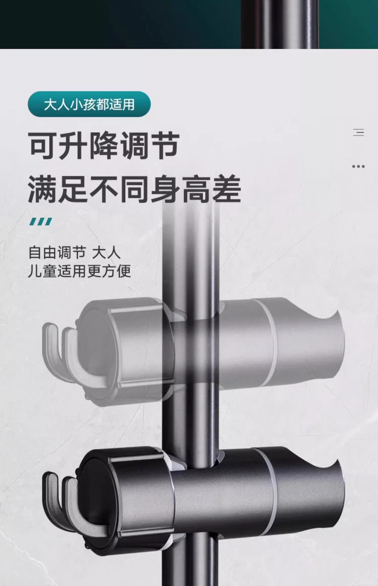 花洒支架免打孔免拆滑套可调节升降杆挂座淋浴器套装带钩花洒配件