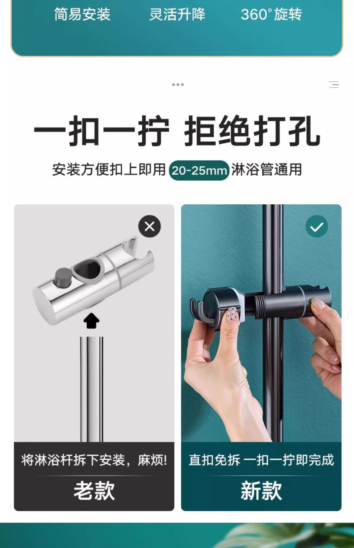 免打孔淋浴花洒支架滑套免拆管淋浴器手持喷头淋雨蓬头通用固定座