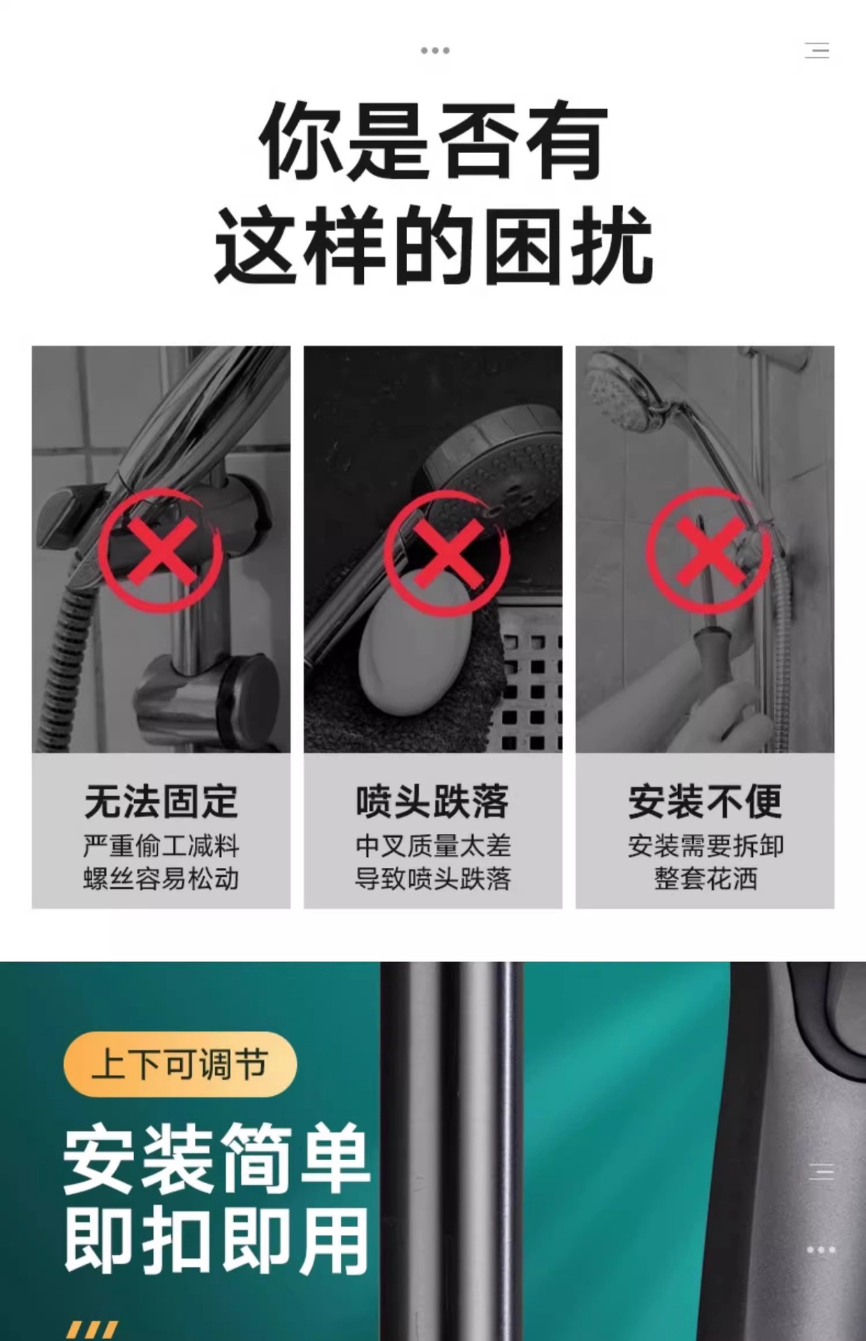 花洒支架升降杆滑套免打孔淋浴杆喷头固定座莲蓬头座可调节手持