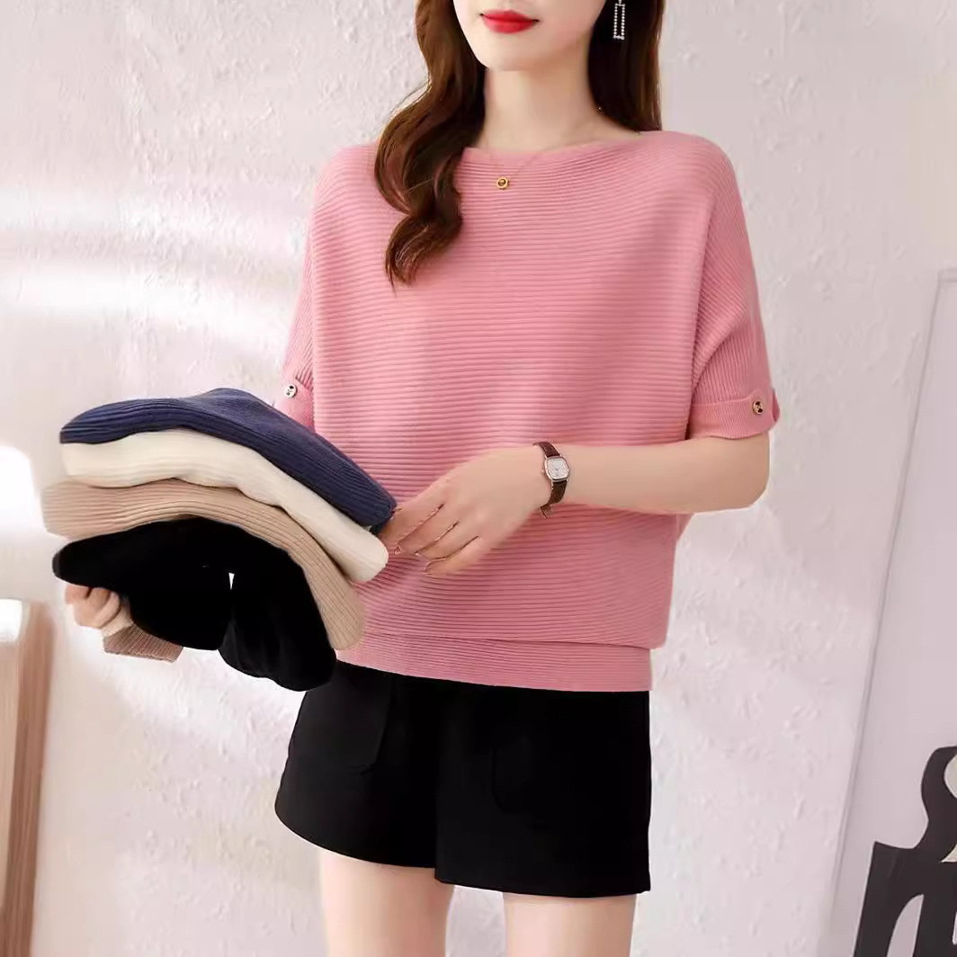 春と秋の韓国スタイルの女性の七分袖スリムボトムセーターショートフレアミッドスリーブプルオーバー女性用薄手セーター