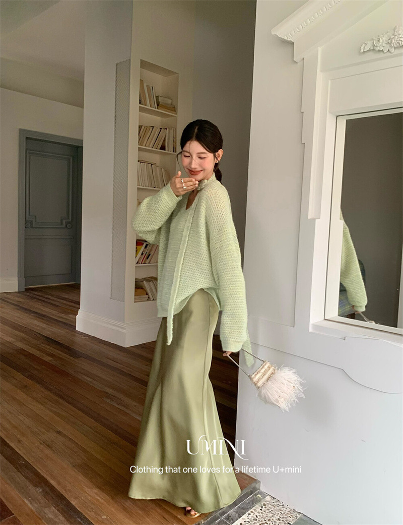 2025秋季新款法式气质风设计感高级宽松毛衣鱼尾半身裙时尚套装女