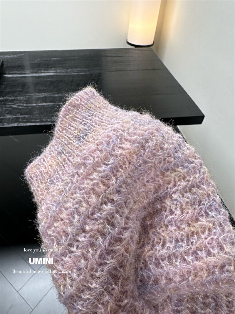 韩系兔毛领飘带针织宽松毛衣2025春秋新款洋气圆领时髦打底衫其他