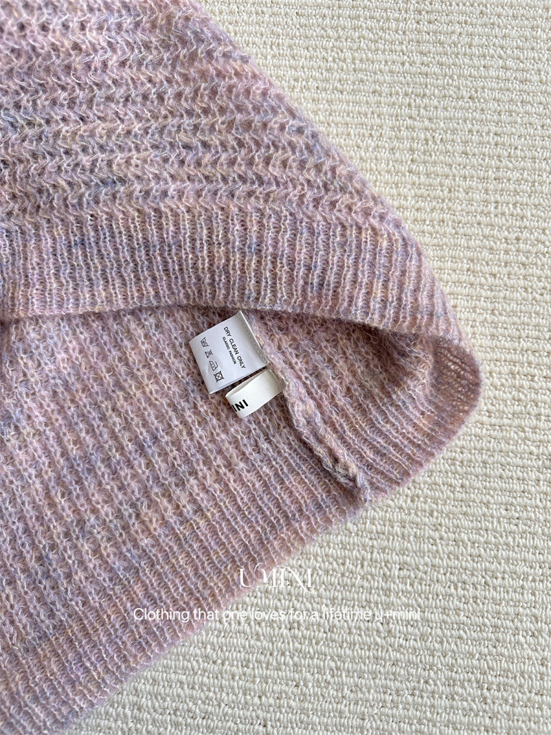 U+MINI 韓国風レイジーな雰囲気のバラの花リボンVネックセーター 暖かいセーター(ウール10%配合)