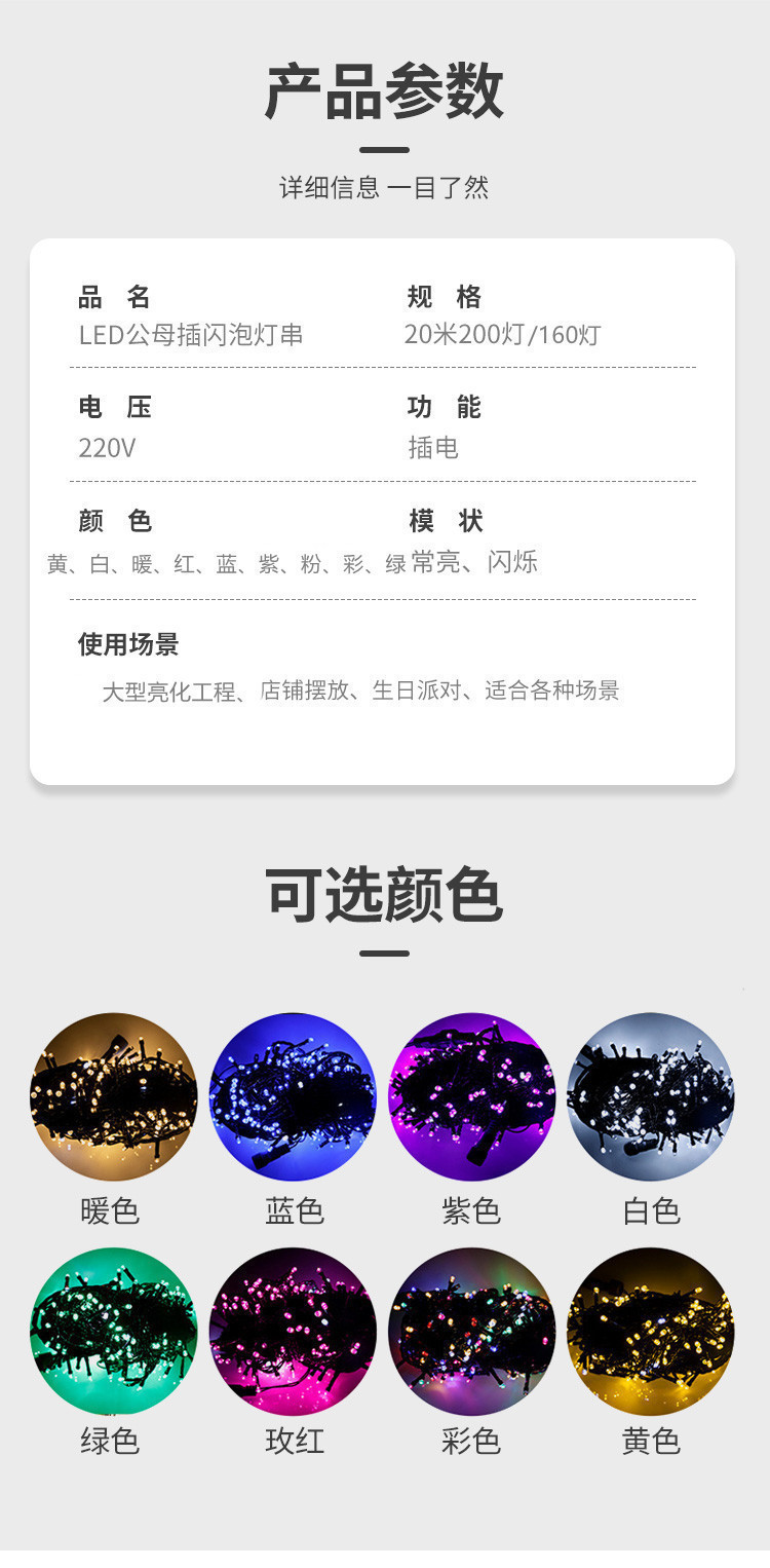 跨境现货led彩灯公母接满天星节日装饰户外防水亮化工程绕树灯串