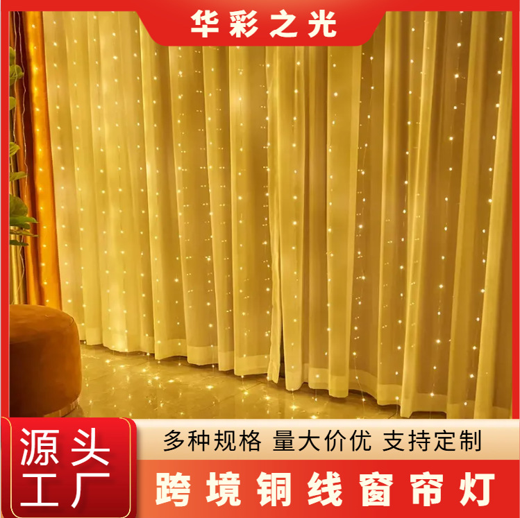 クロスボーダー LED カーテンライト 3*3m フックリモコン USB プラグイン銅線ライトクリスマス装飾ライトレザーラインライト