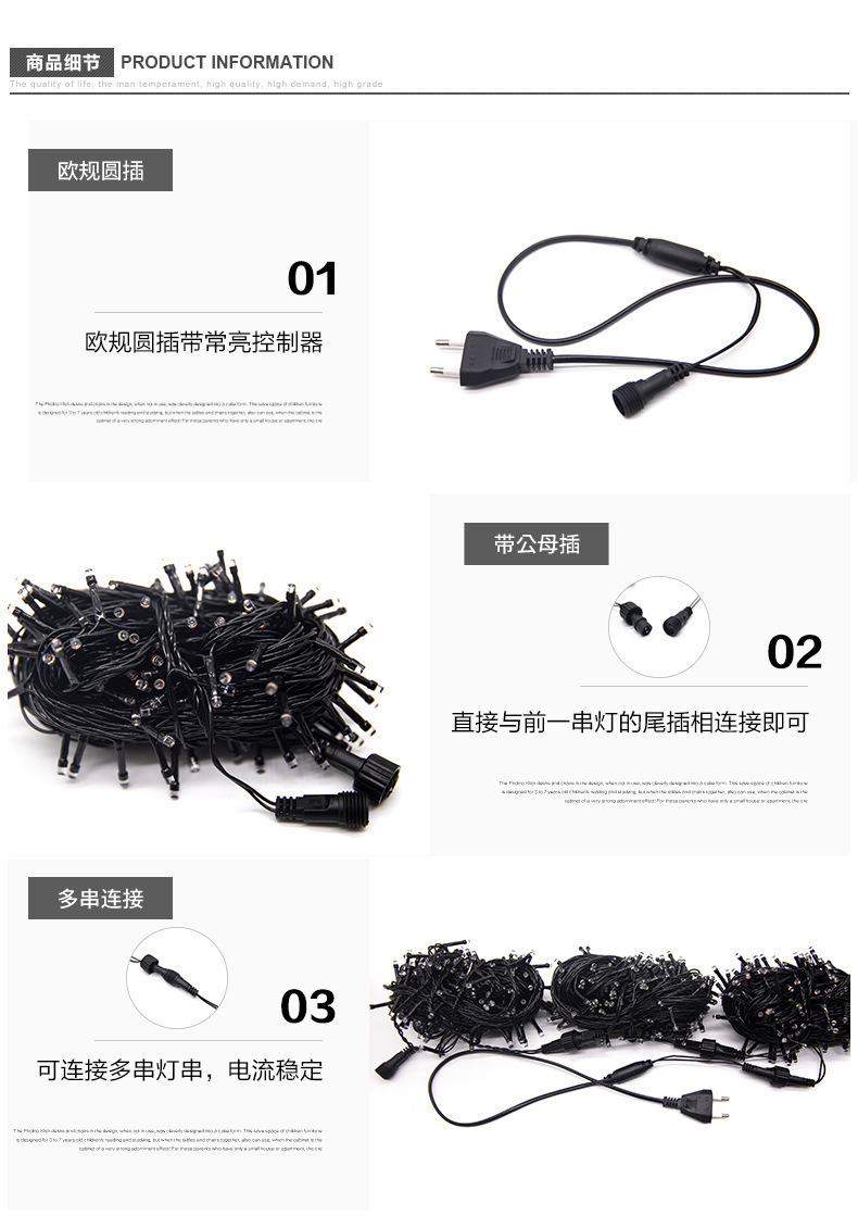 黒線フラッシュLEDライトストリング装飾ライト屋外庭園街路防水オス・メス接続クリスマスストリングライト防水耐久性