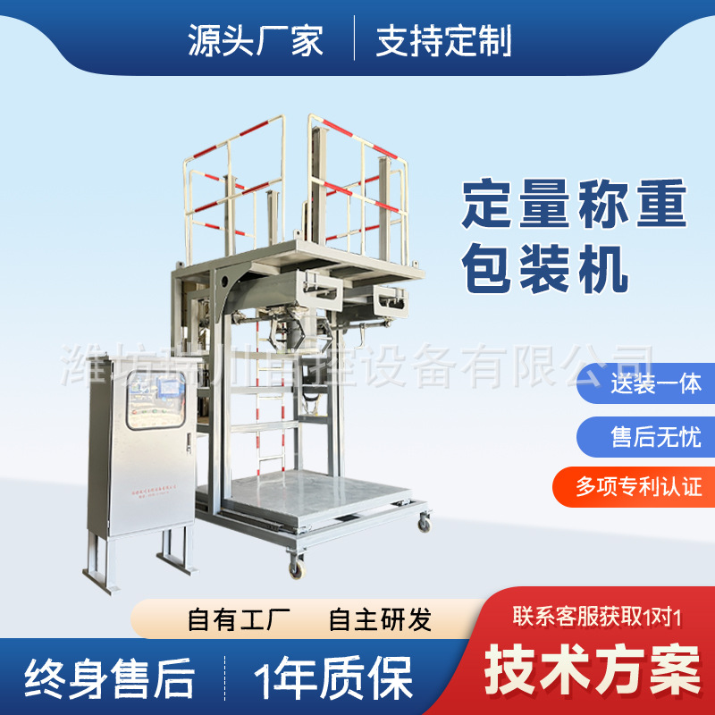 本机使用塑料编制敞口袋,插袋,夹袋,计量,灌装,落袋,封口,输送,完成整个包装运输过程。本机以25-50kg以内的定量包装为主,分单位计量和双秤计量两种,特殊规格可以制定。