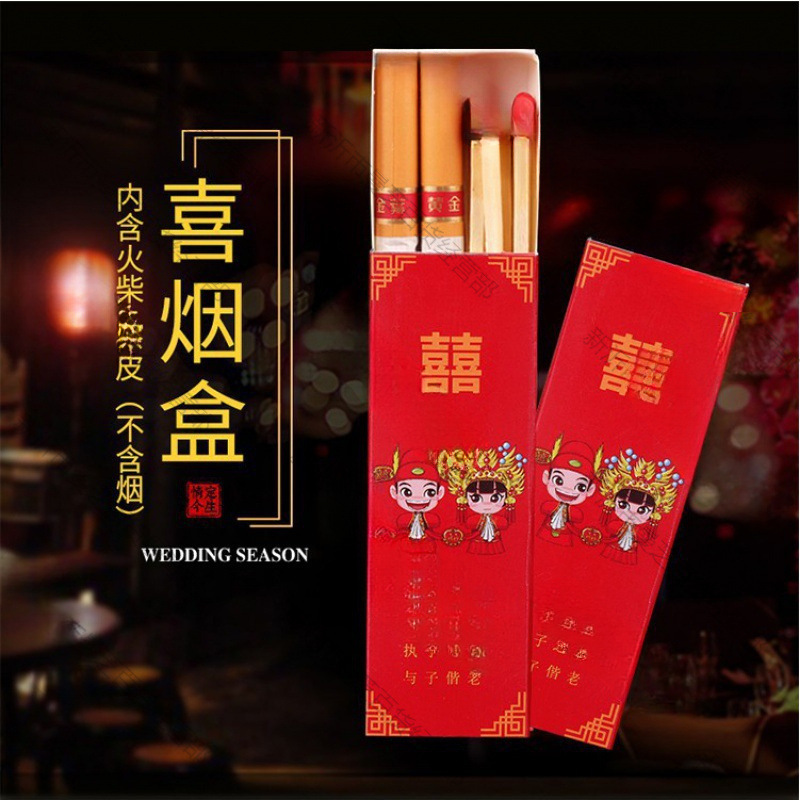 喜煙箱結婚2本入り中国式たばこ2本入り喜糖箱マッチ箱付き喜字結婚式タバコ箱