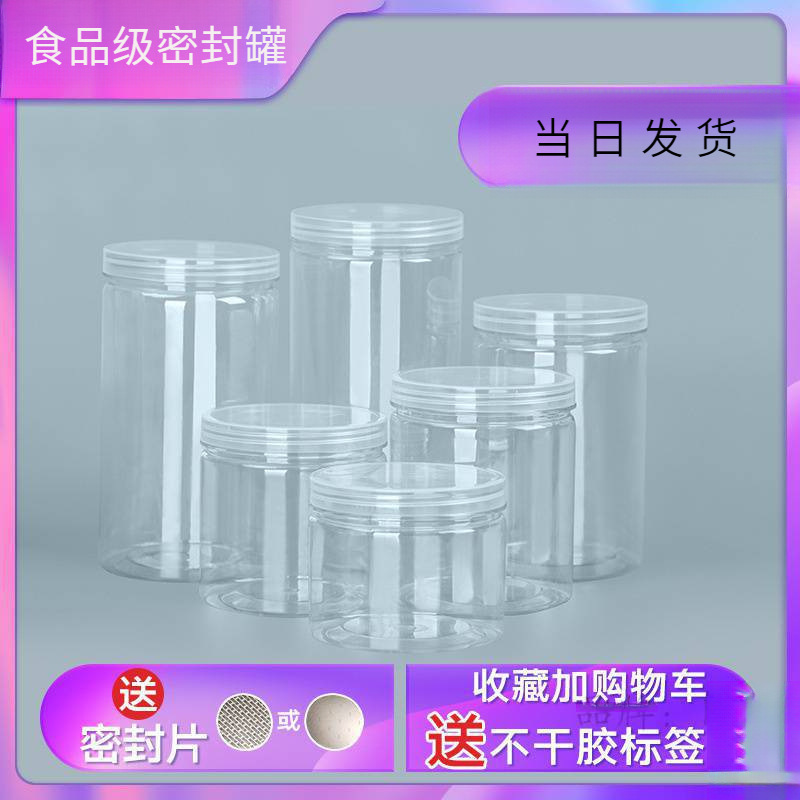 ペット密封缶食品グレードの包装缶ボトルプラスチック透明広口蓋付き穀物蜂蜜茶保存