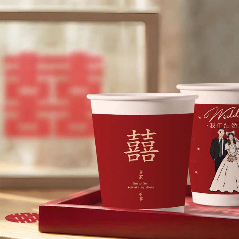 婚庆批发一次性纸杯红色喜庆加厚加硬水杯婚宴敬酒杯家用整箱