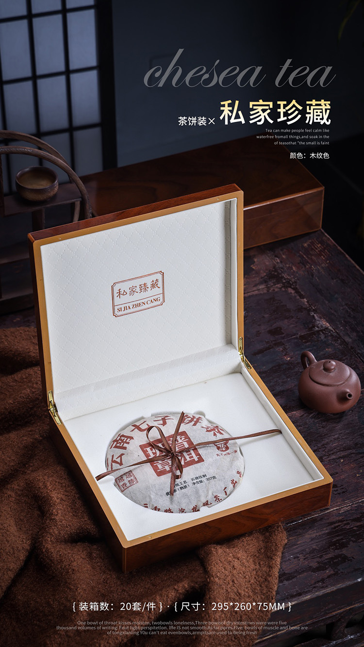 茶の包装の私家の至高のチベットの木の箱の空のギフトボックスの岩のお茶の長い泡の袋の半分の斤は1斤の短い泡の袋の木目の色を並べます。