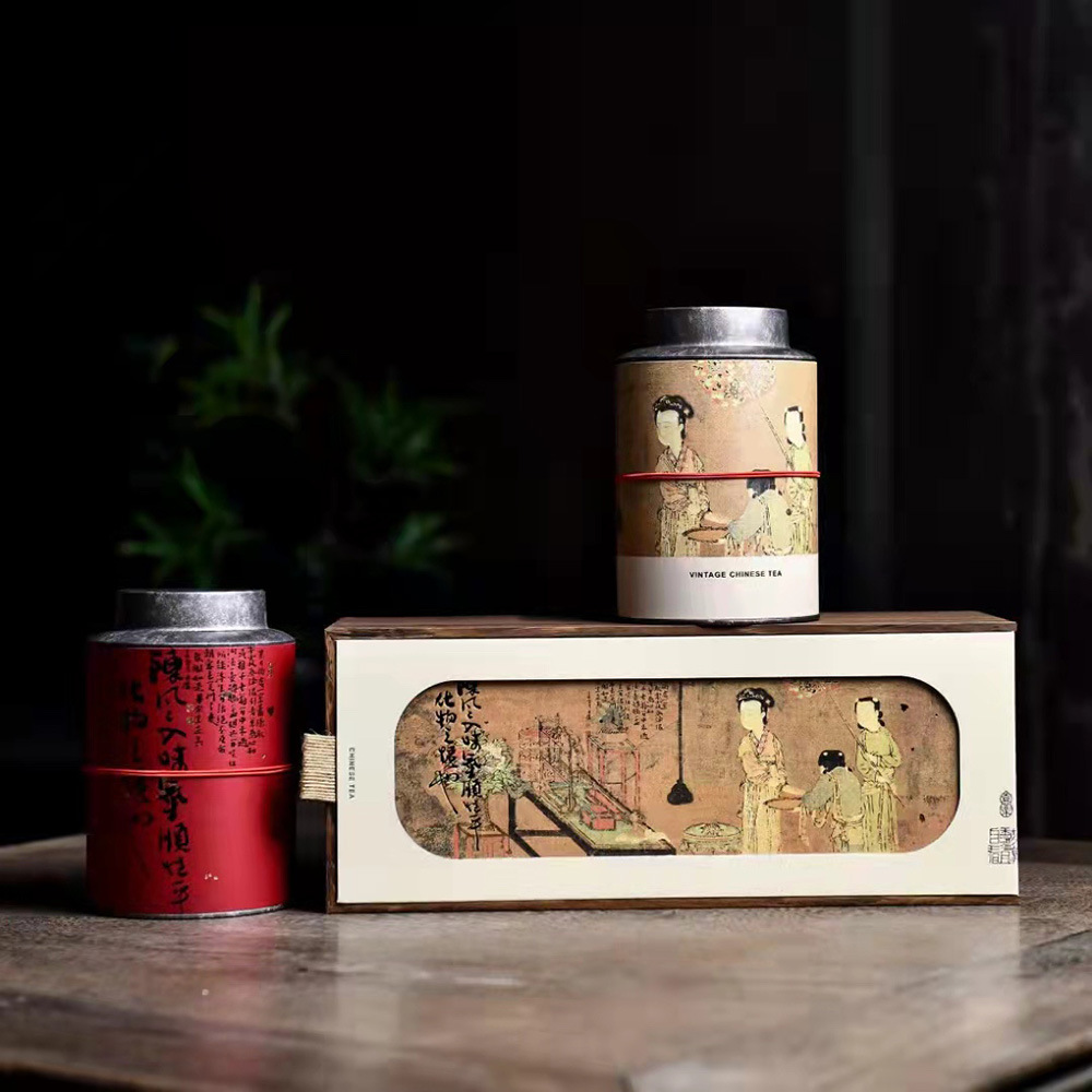茶葉包装陳風双缶空礼箱古典美人図ジャスミン茶二円缶紅茶など公版特価