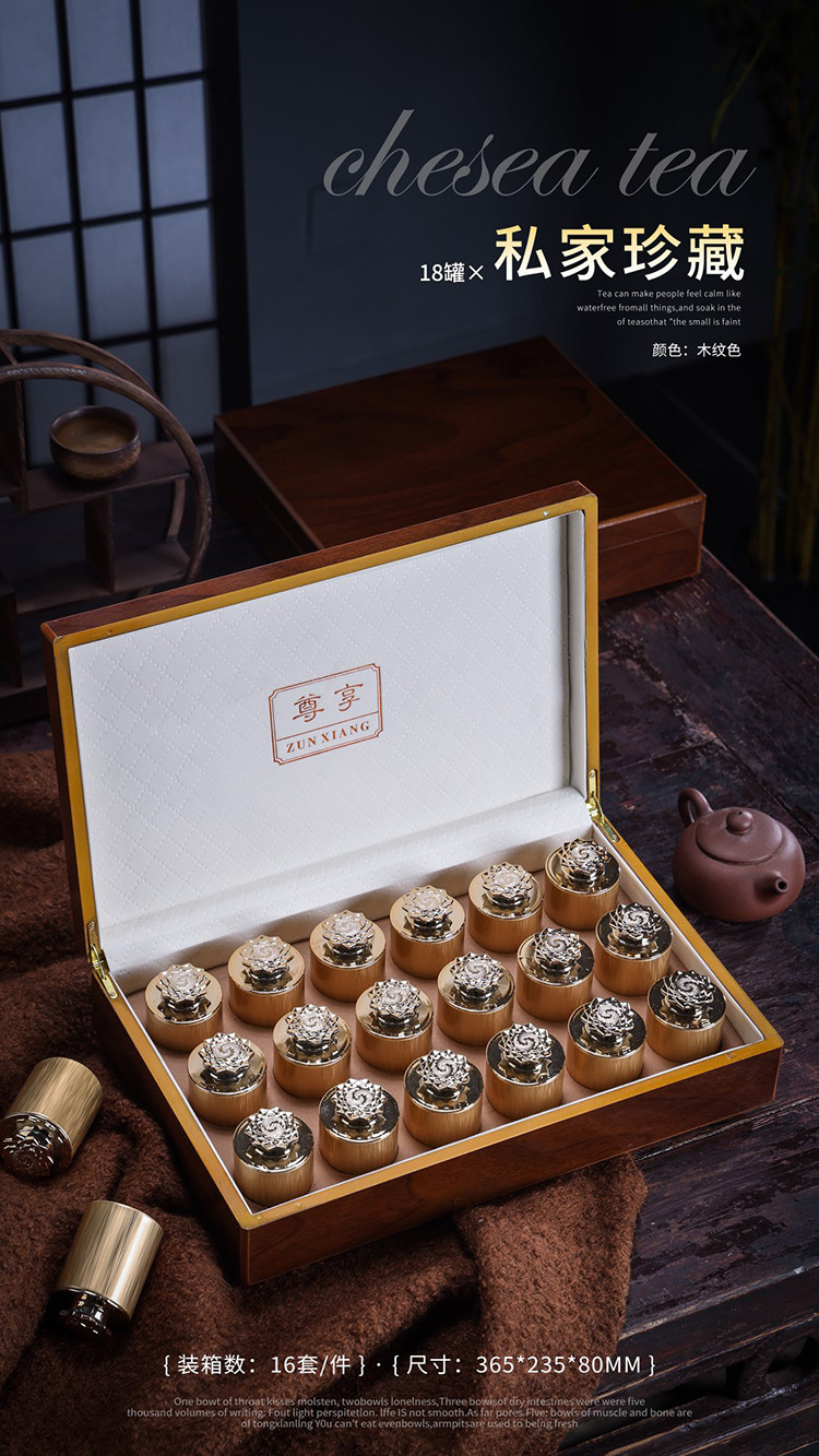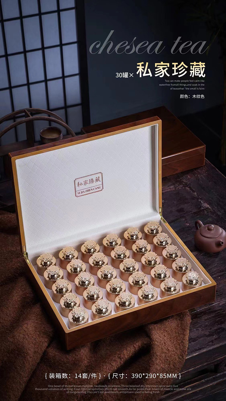 茶葉包装私家至高蔵木箱小缶茶空礼箱18缶30缶缶大紅衿馬頭岩シナモン