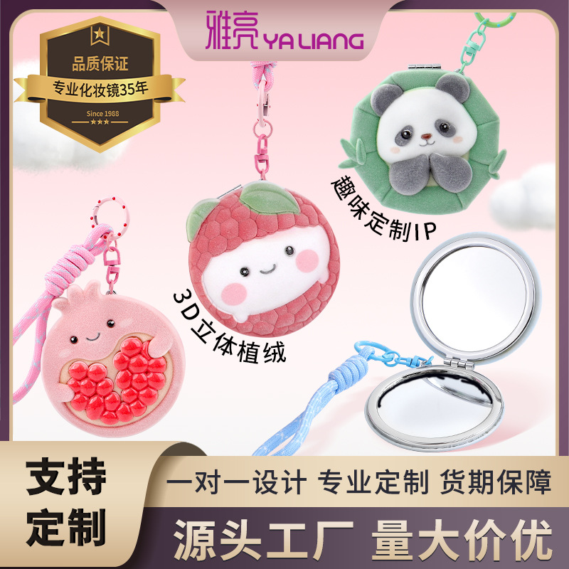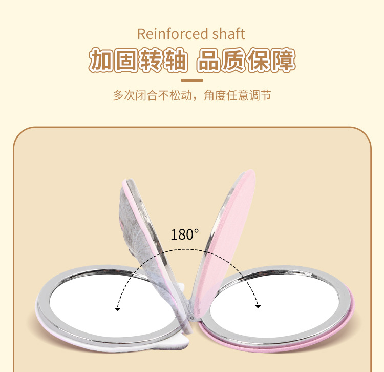 高颜值外出便携折叠手持植绒动物双面立体小镜子手绳携带化妆镜