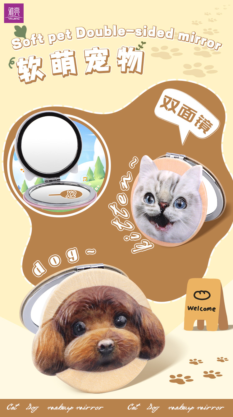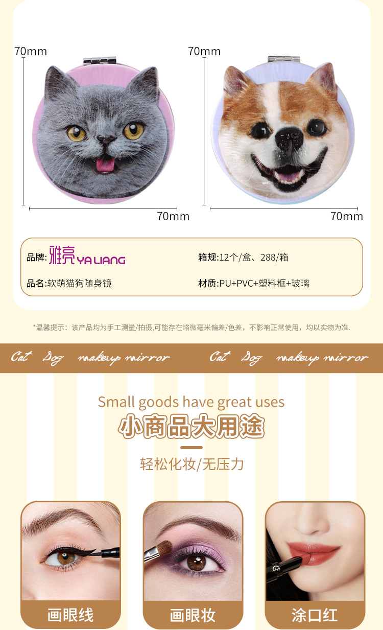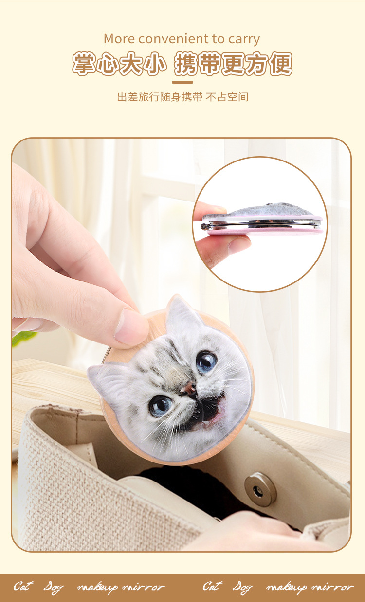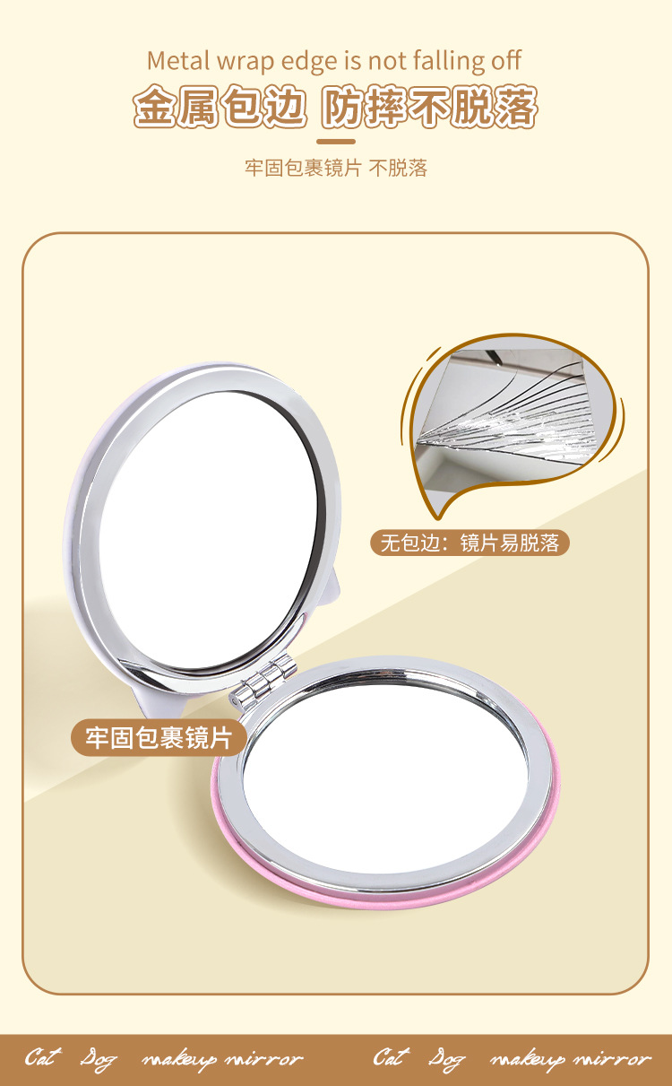 かわいいおしゃれな猫頭両面携帯漫画ポケットミラー、学生寮用ミラー、ロゴ印刷可能、化粧鏡