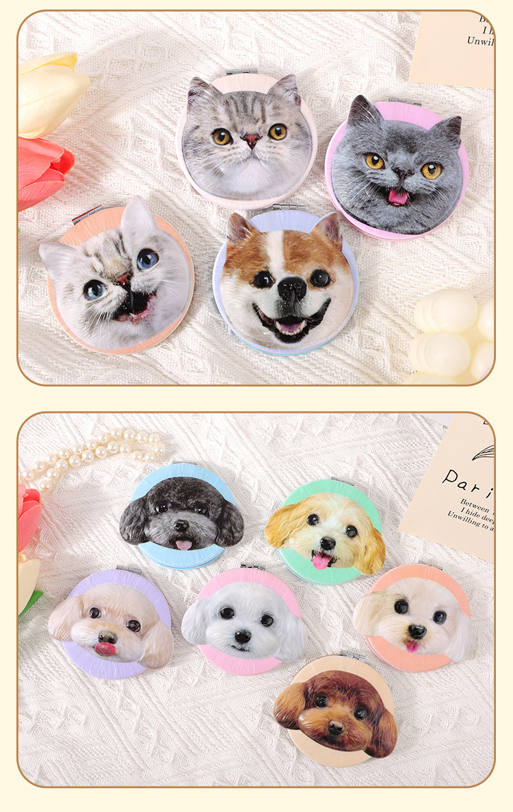 ペットクリエイティブファッション化粧鏡かわいいポータブル折りたたみ両面小型ミラー美容ミラー 3D 学生ポータブル