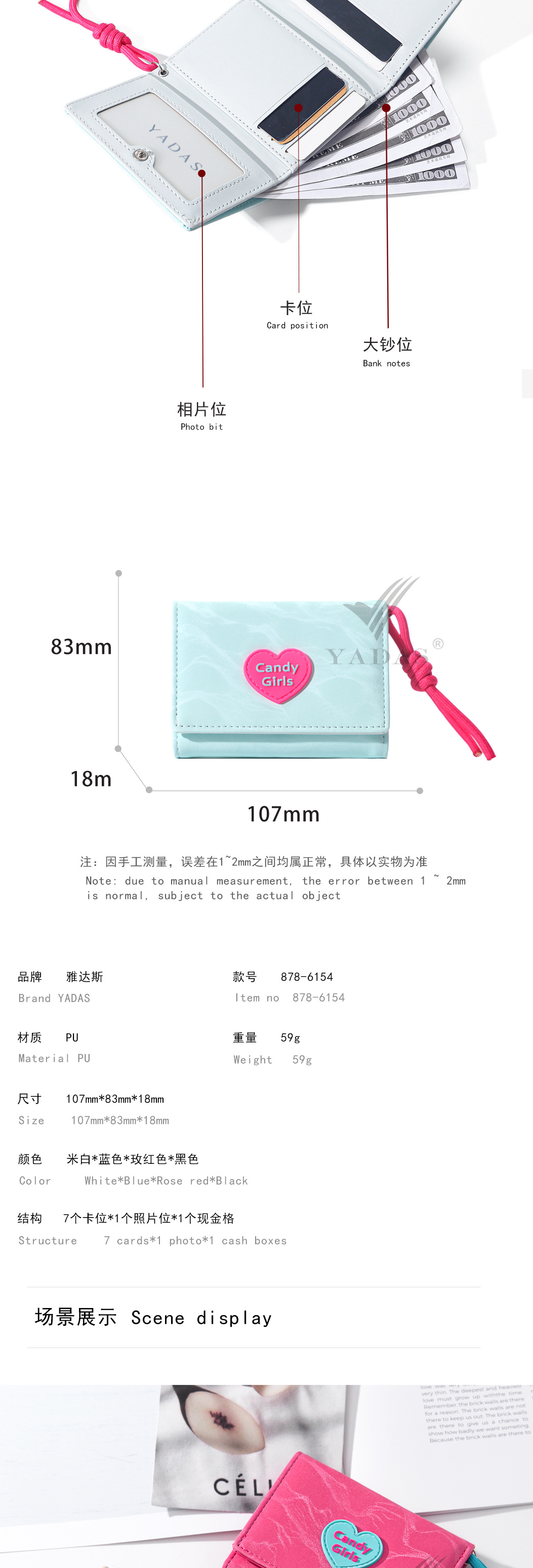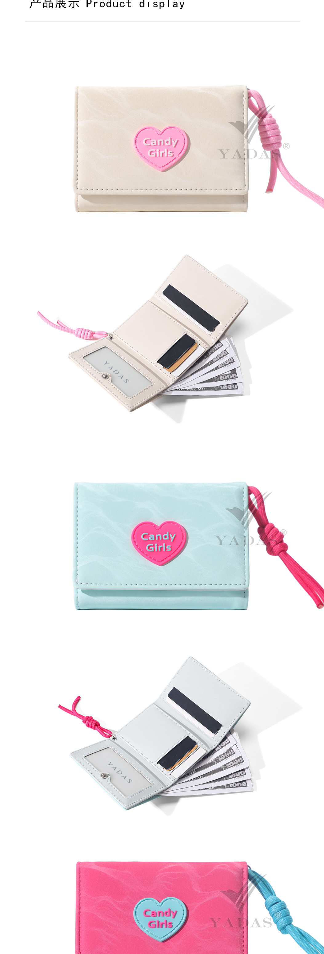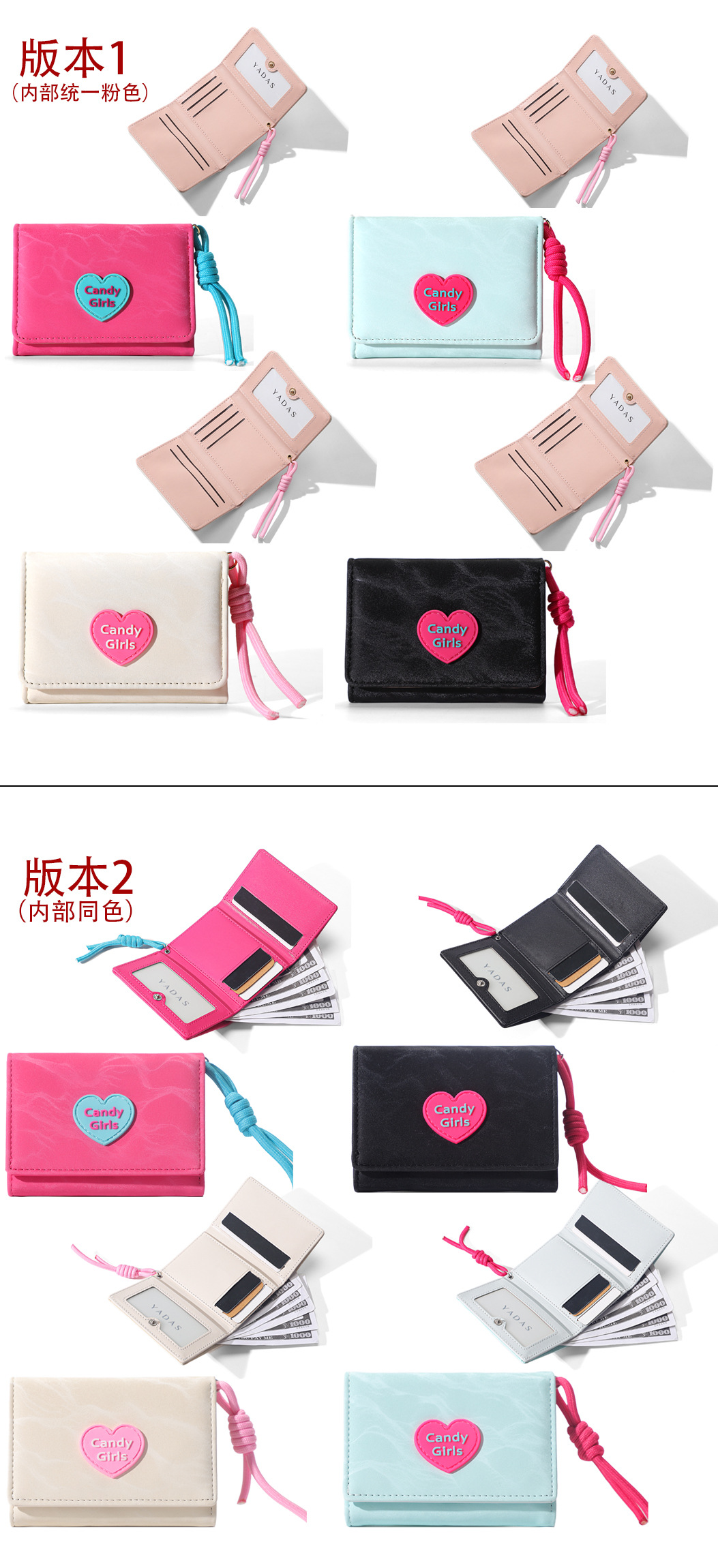 挂绳钱包~韩版INS爱心糖果钱包女简约短款女士钱包批发三折学生