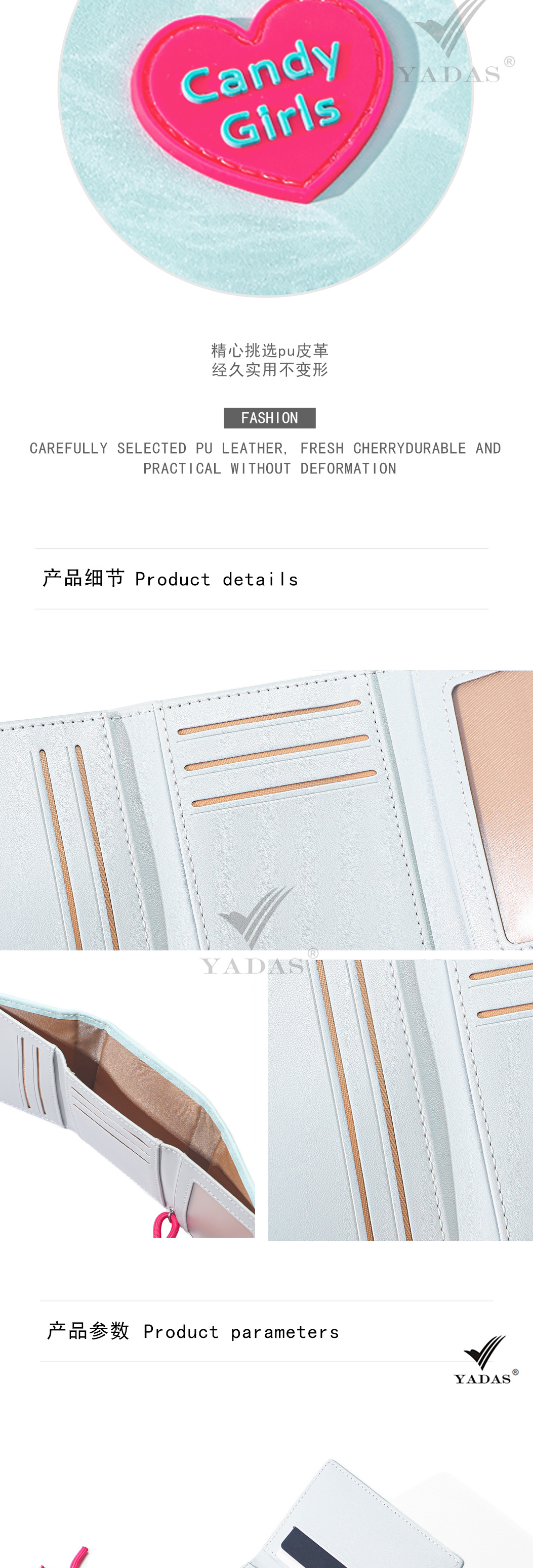 【キャンディガール】YADAS小香レディースカードケースプレミアムpuレザーショート三つ折り小銭入れウォレット
