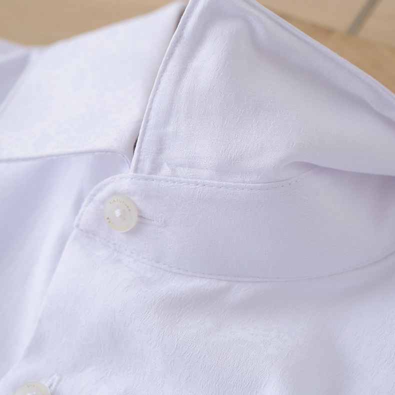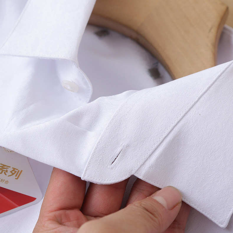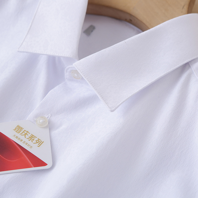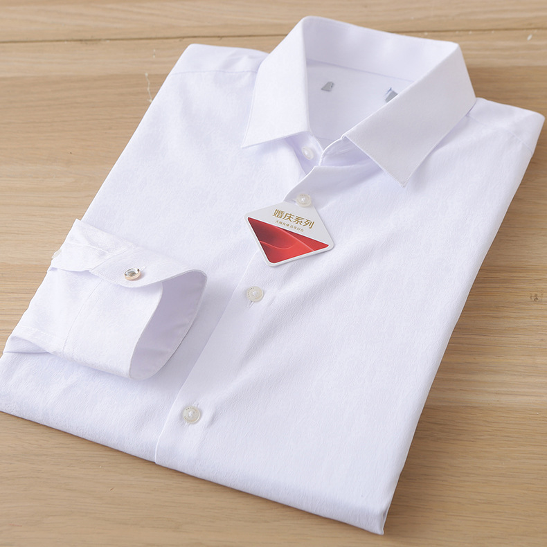 海のブランドの切り抜きの長袖の白いシャツの男性の春と秋の結婚祝いのビジネスのカジュアルな純色のジャカードのシャツの男性の3U076