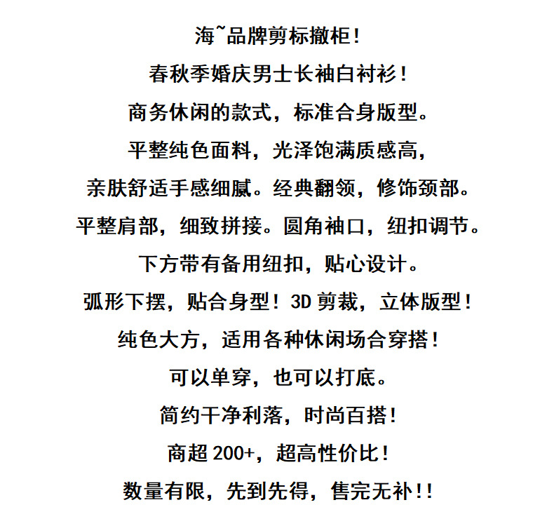 海牌剪标长袖衬衫男春秋季时尚渐变微弹尖领免烫休闲衬衣男3U129