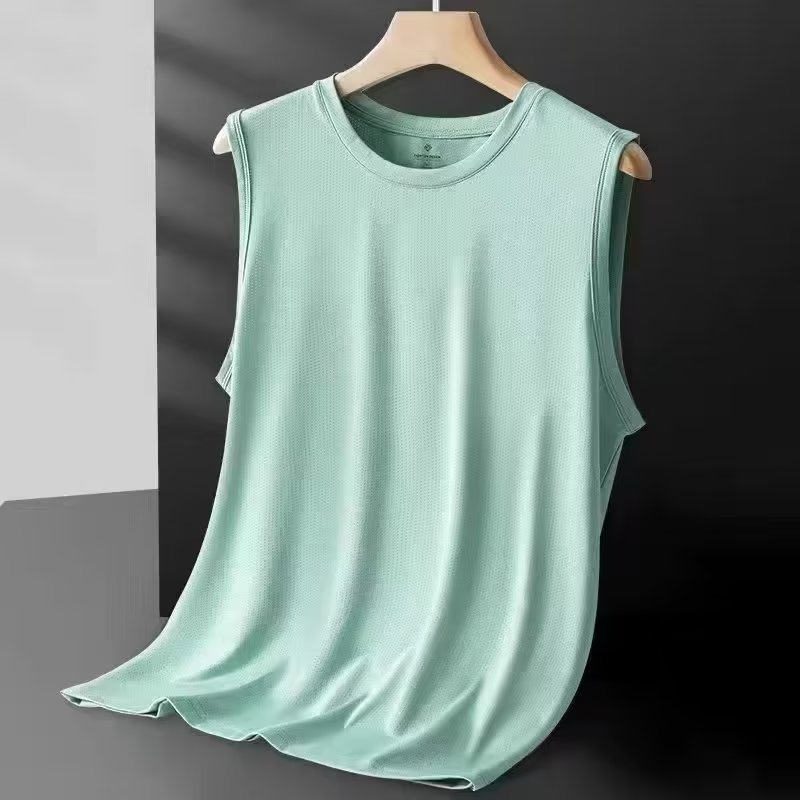 2025夏の男性の氷糸メッシュtシャツ男性のゆるいノースリーブのカンタンの大きいサイズのシンプルなバスケットボールのコートのトレンド